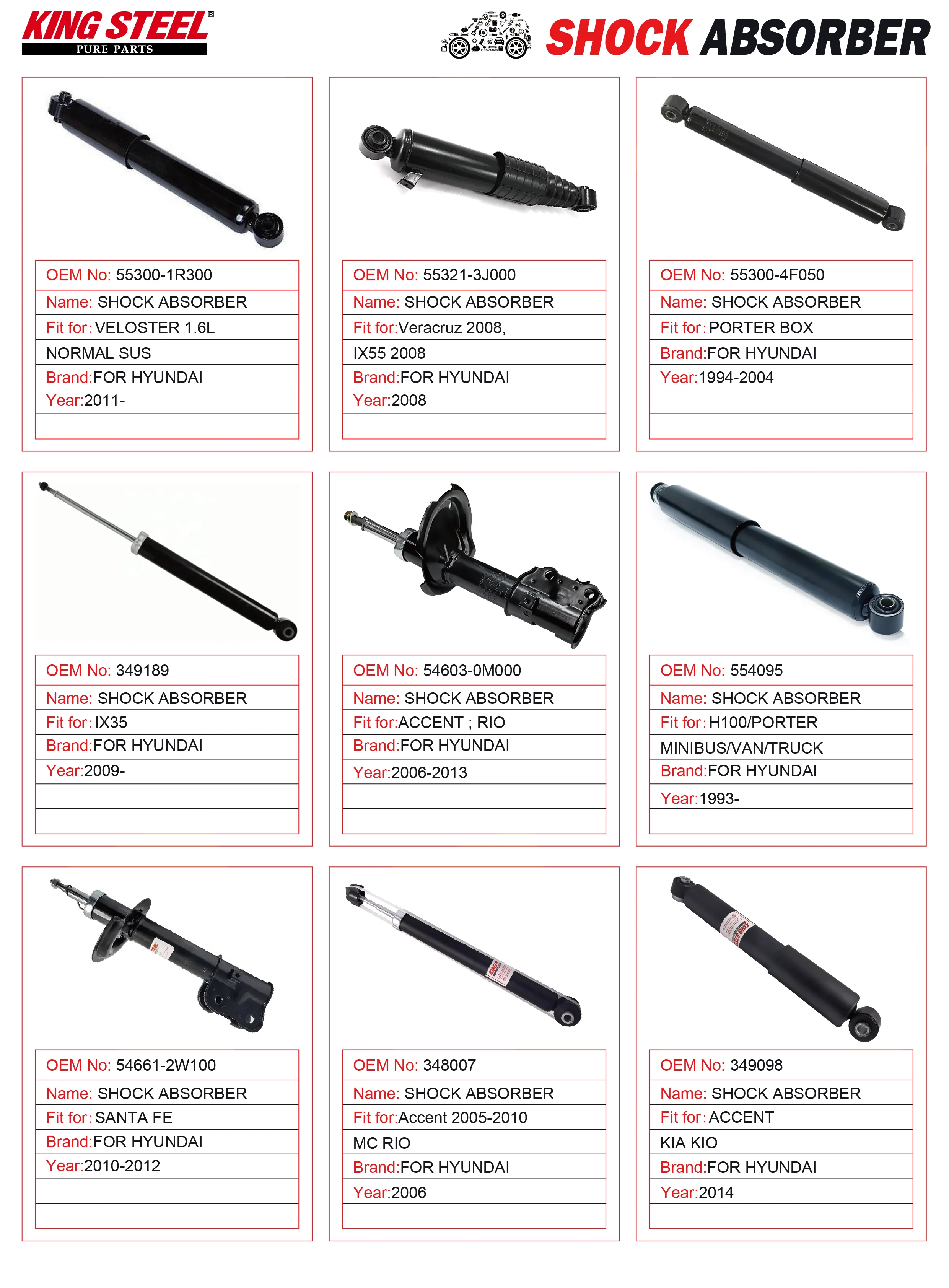 OE 54660-2B540/2P500/0W650/2P650/2B500/2B510/2P000 Amortiguadores Para Auto Front Car Shock Absorber for HYUNDAI Solaris KIA Rio