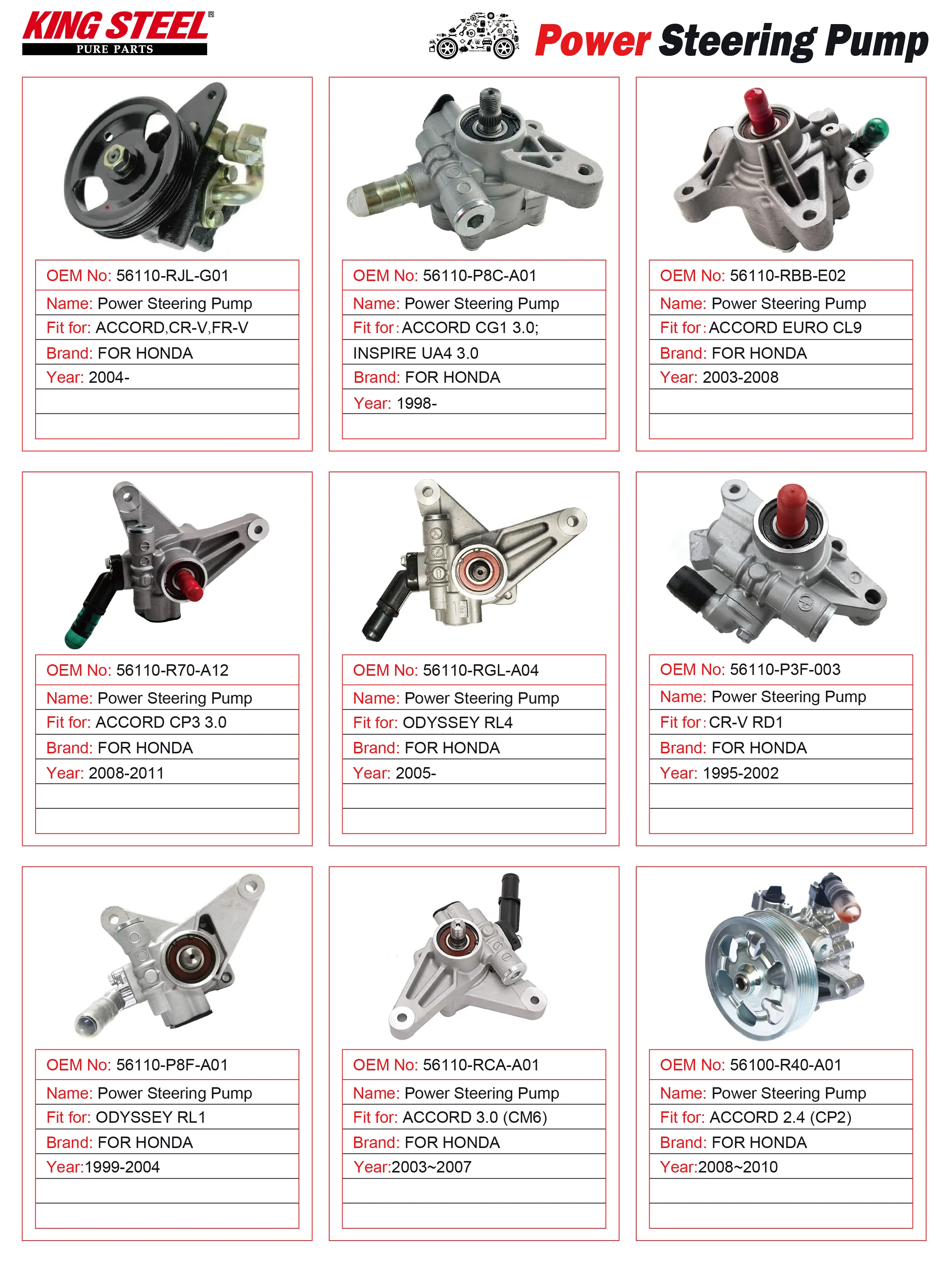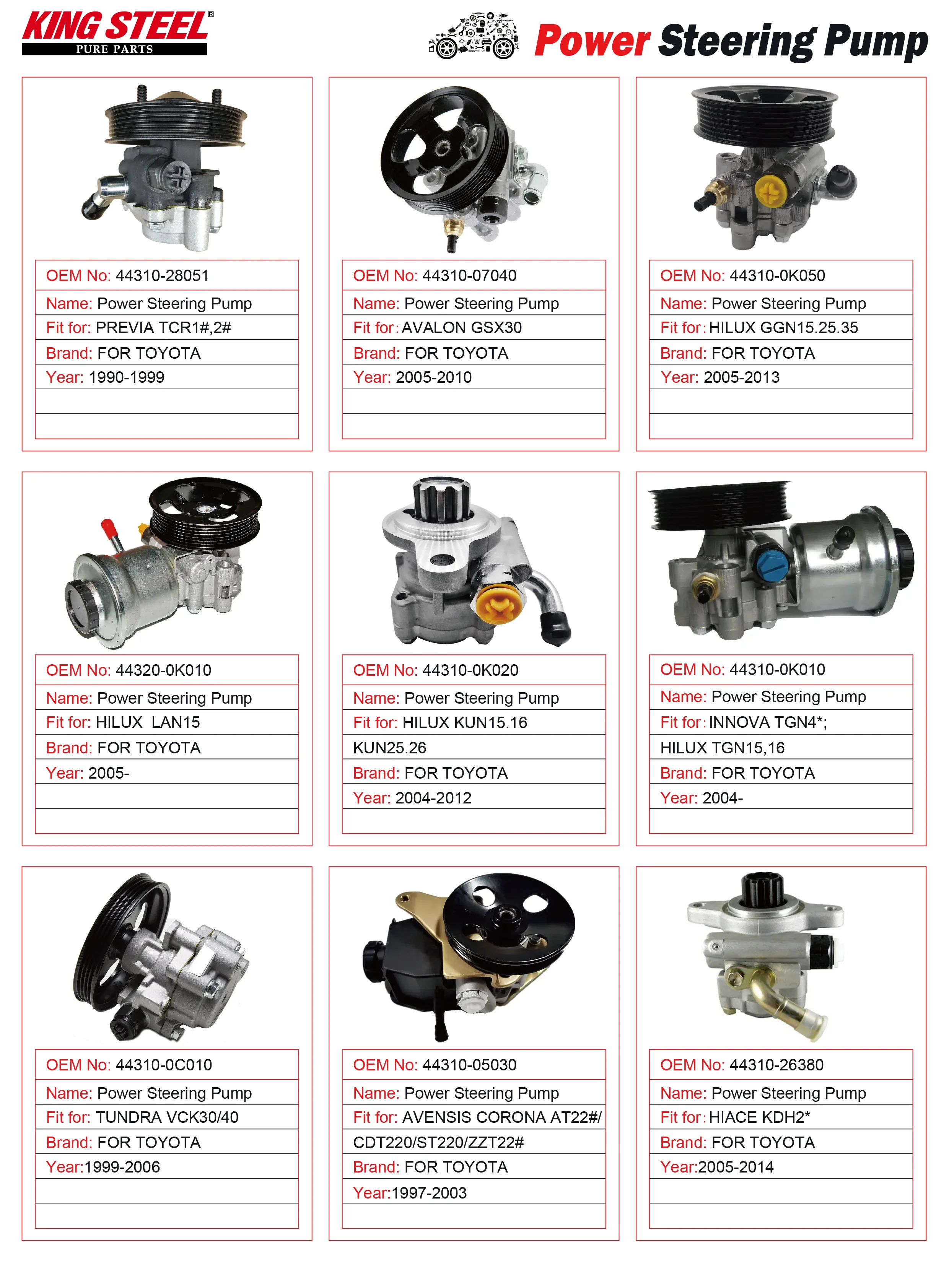 KINGSTEEL OEM 44320-60171 44320-60171-A 44320-60170 Car Parts Power Steering Pump for TOYOTA LAND CRUISER HZJ80 HZJ105