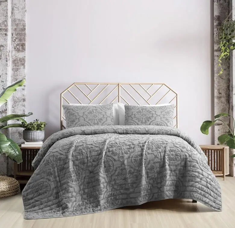 KOSMOS American Style Solid Color Pillow Case Bedding 100% Microfiber Bedspread Quilt Set