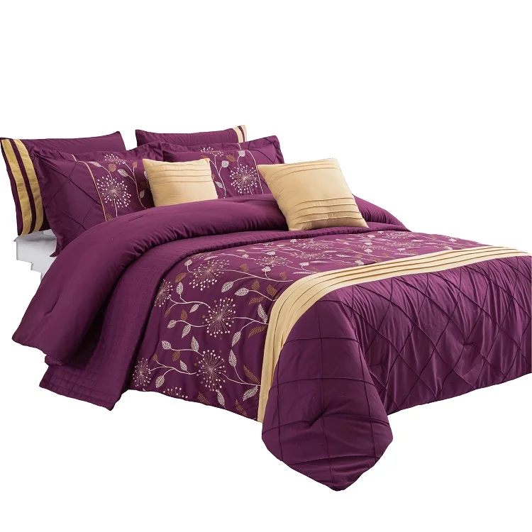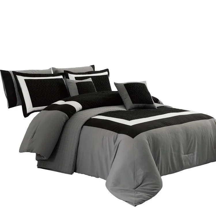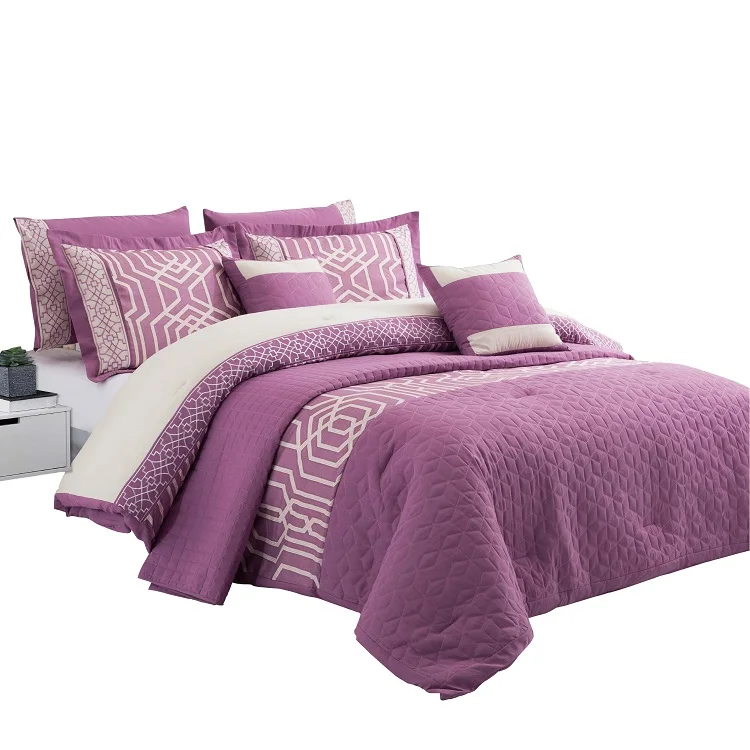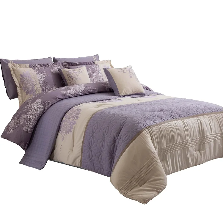 KOSMOS Luxury Microfiber Bed Comforter Set Plain Style Embroidered Home Textile Bed Linen with Adult Patchwork Design