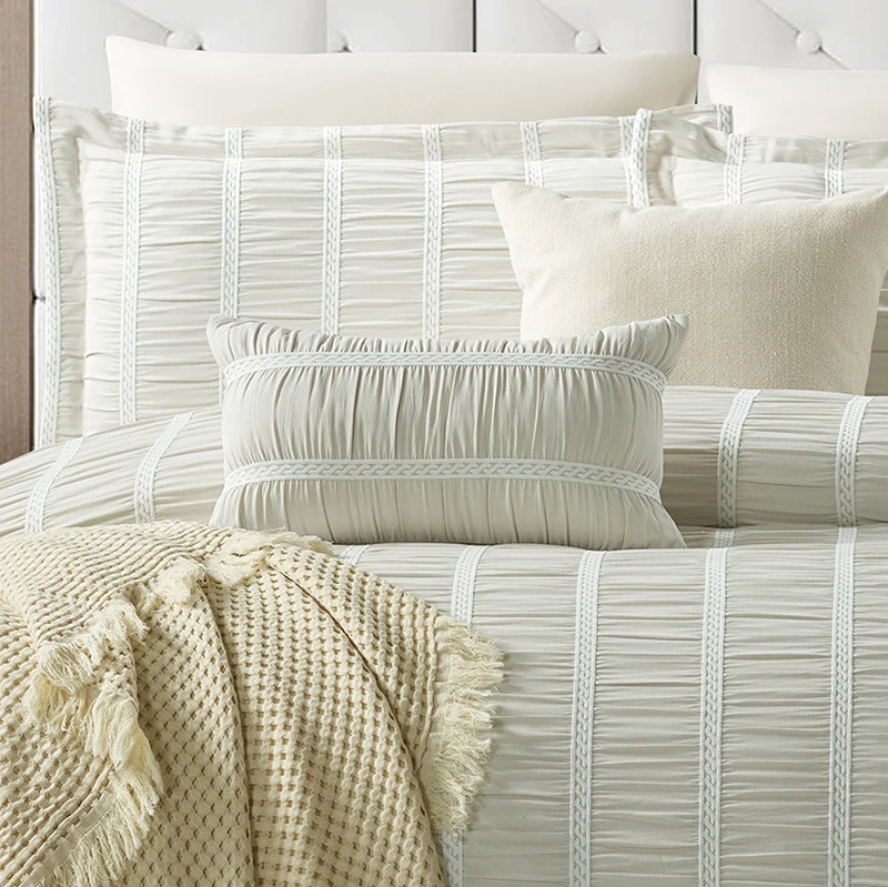 Factory Customized Simple Modern Full/Queen Size 200TC Plain Color Stripe 8pcs Eco-Friendly Comforter Set Wholesale