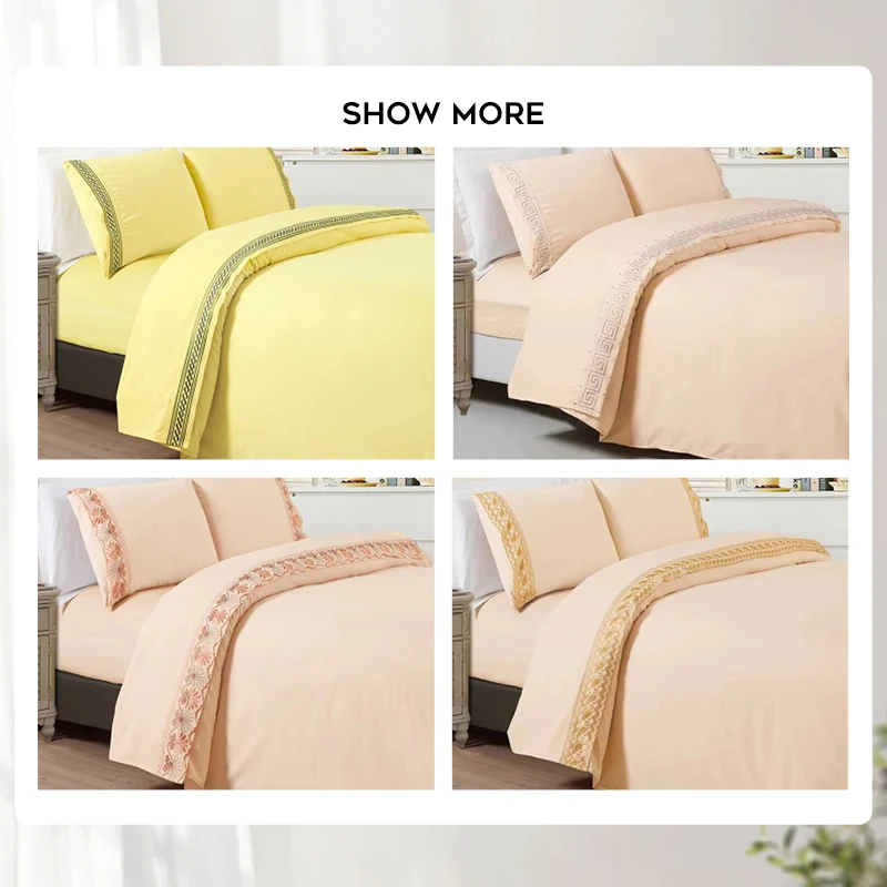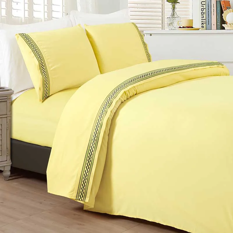 Solid Color Embroidery 100% Microfiber 4 Pcs Bed Sheet Set
