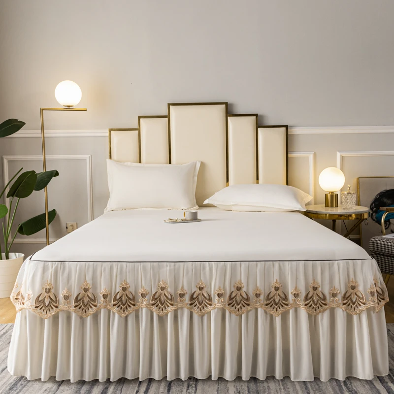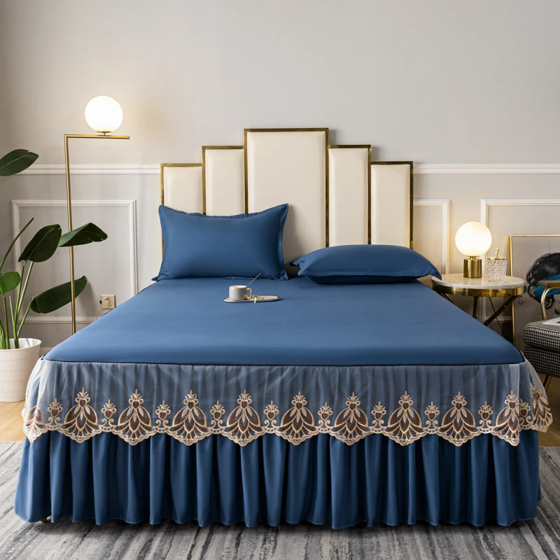 Hot Sale Home Textiles Bed Skirt Grey Embroidery Lace Sheets Bedspread Bedding Skirt for Hotel