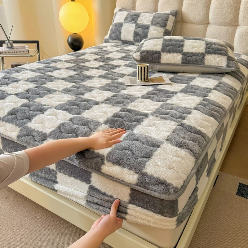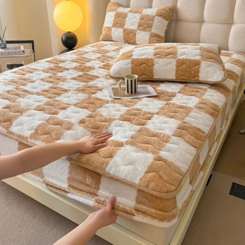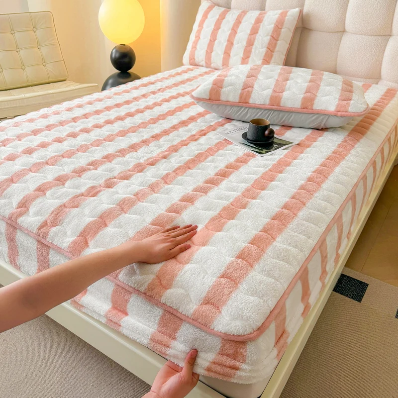 Thickened Winter Milk Velvet Quilted Mattress Cover Single Piece with Extra Plush Tafleece and Coral Fleece Protector