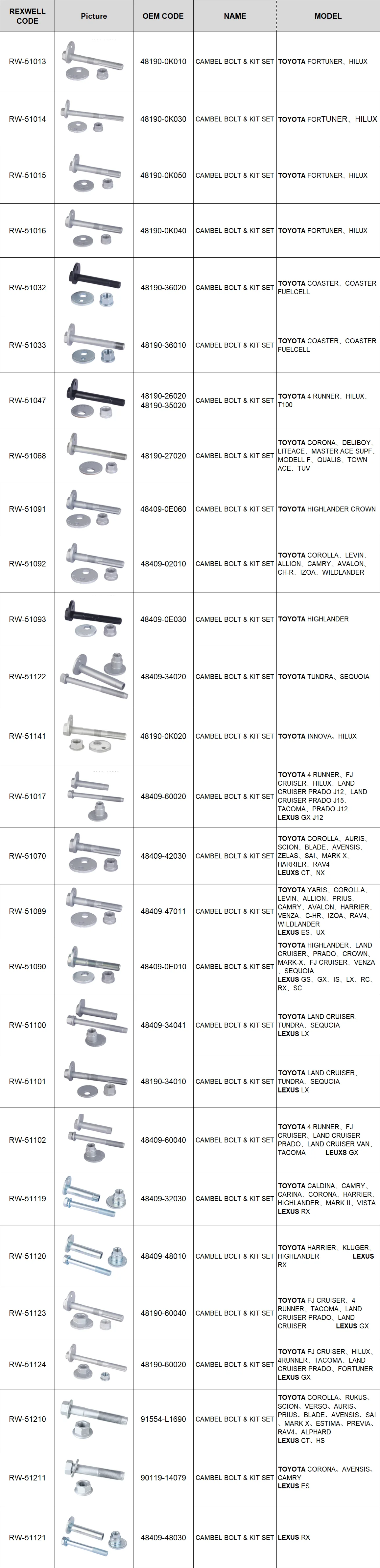 New Genuine OEM 48190-60040 Auto Front Suspension Parts Control Arm Camber Adjust Bolts Kit for Toyota Land Cruiser Lexus GX460