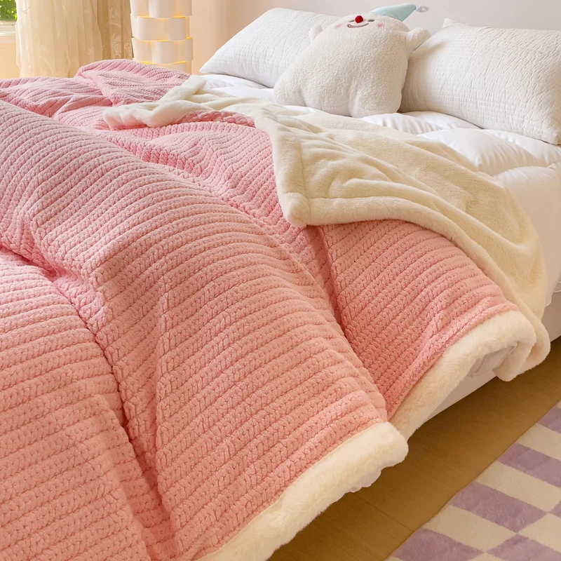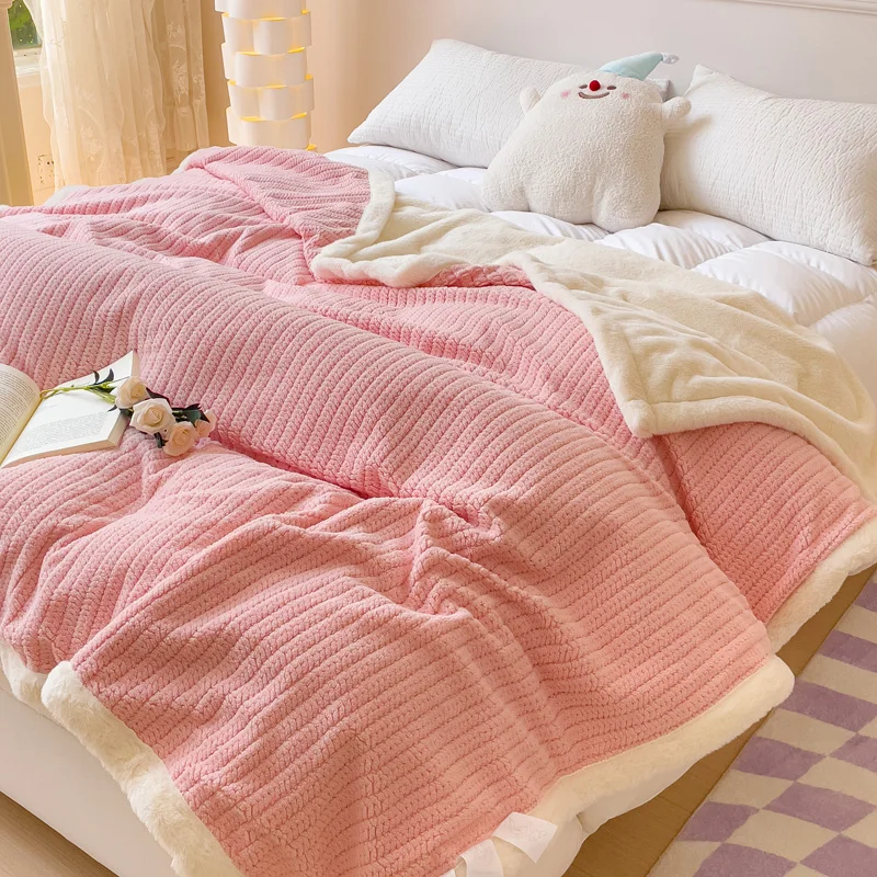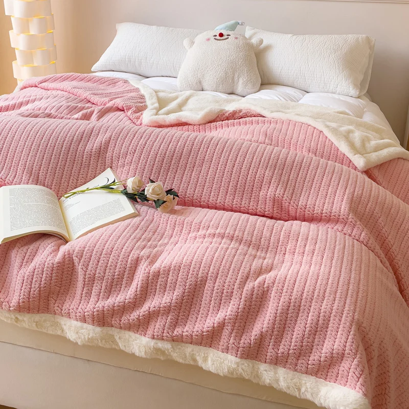 Wholesale Reversible Knitted Double Layer Throw Fluffy Flannel Faux Rabbit Fur Blanket for Sofa Couch