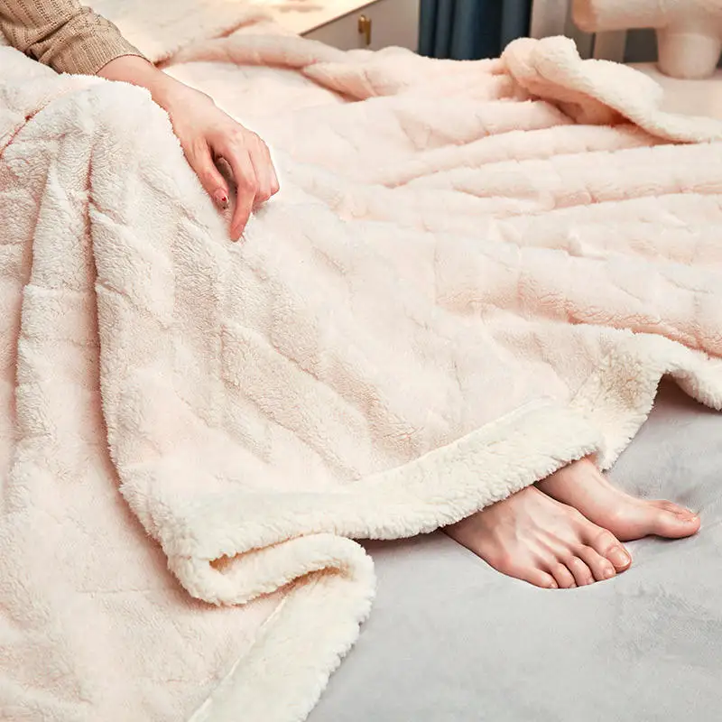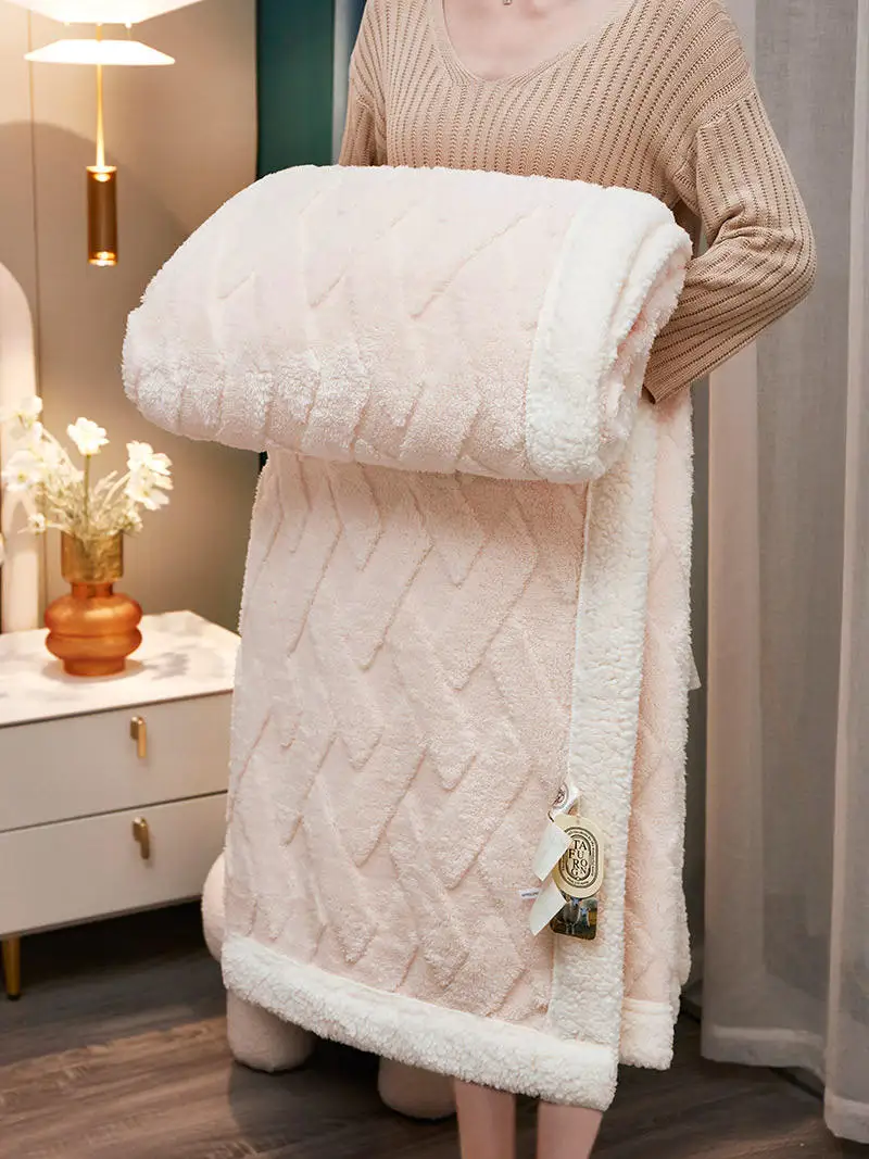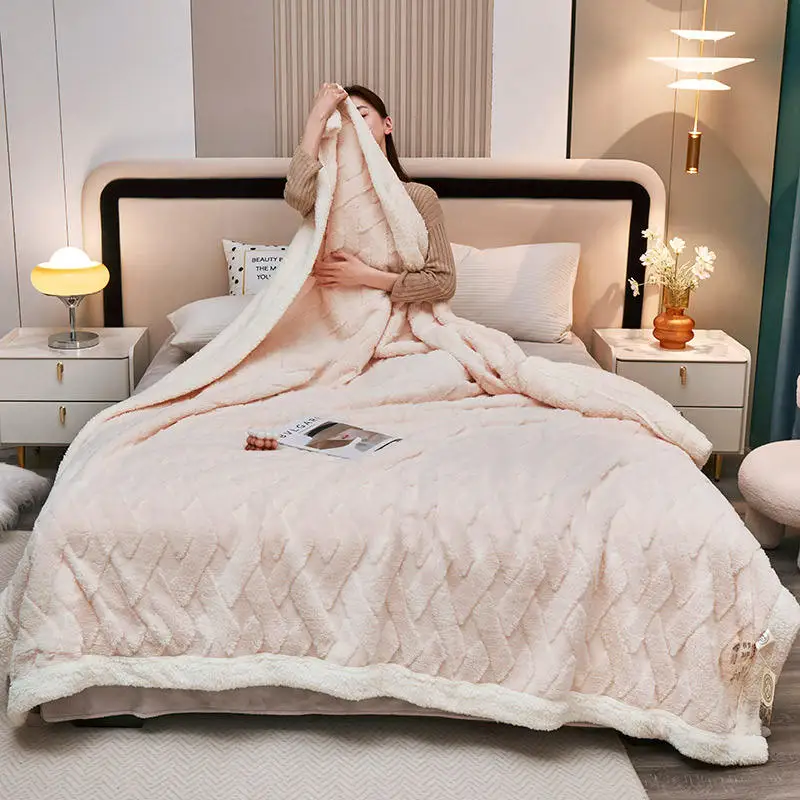 Luxury Soft Double Layer Blanket Taffeta Velvet and Sherpa Fleece Cozy Warm Sofa Bed Blanket for Bedroom Living Room Office Nap