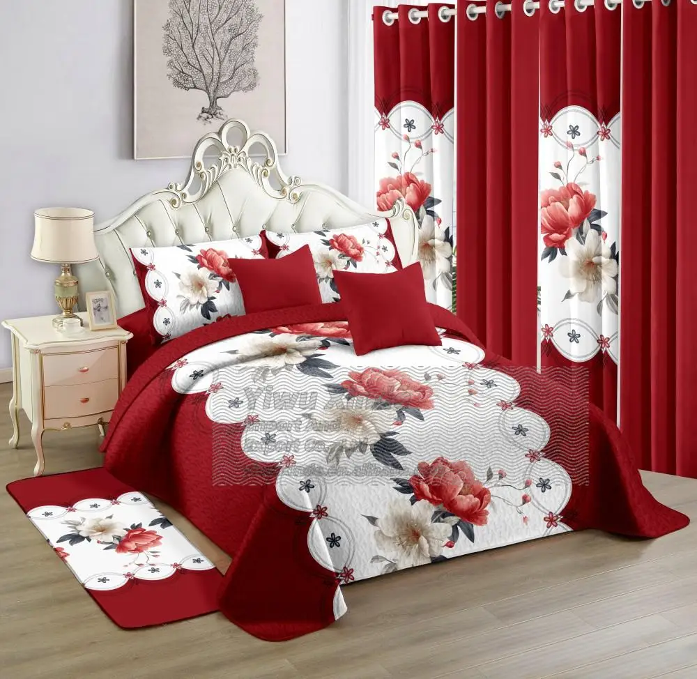 Wholesale King Size 12 Pcs Floral Pattern Quilt Bedspread Set 12 Pcs Matching Curtains Polyester-Quilt Sets for All Seasons