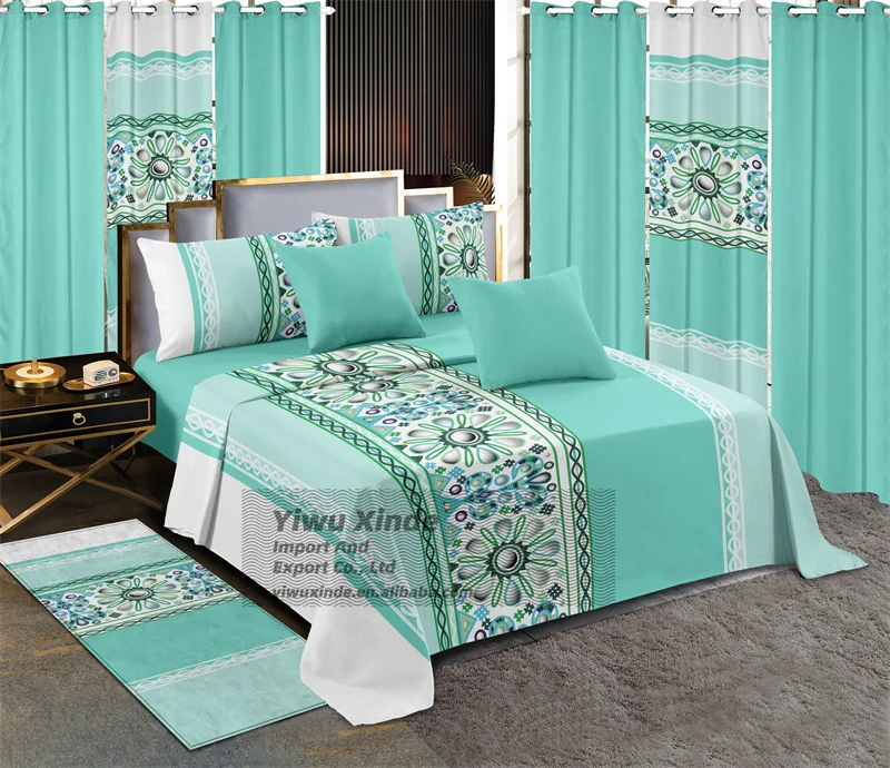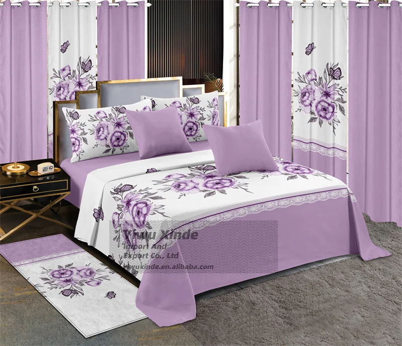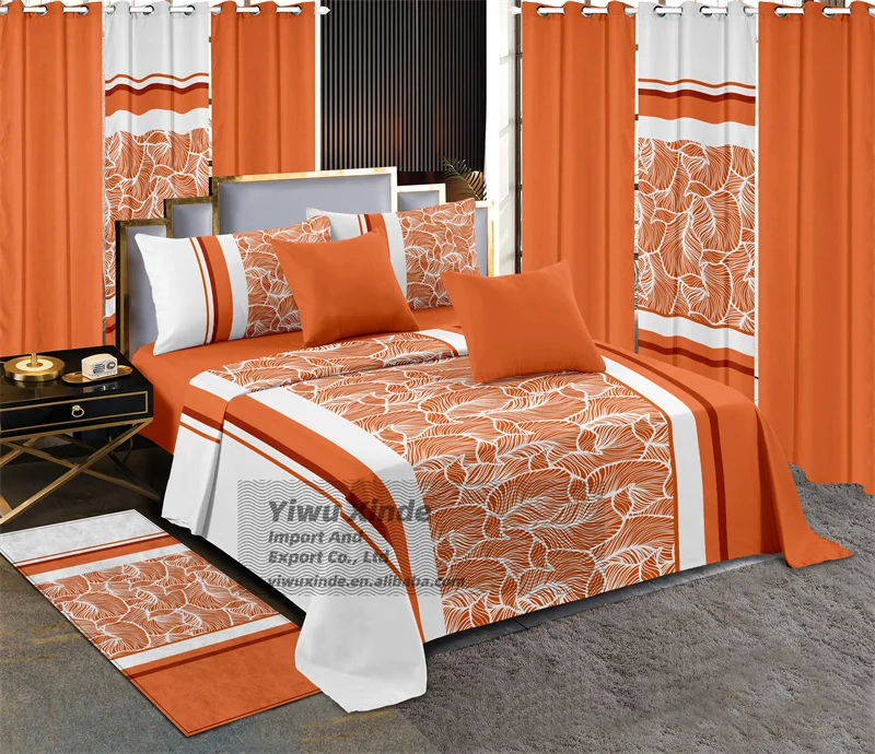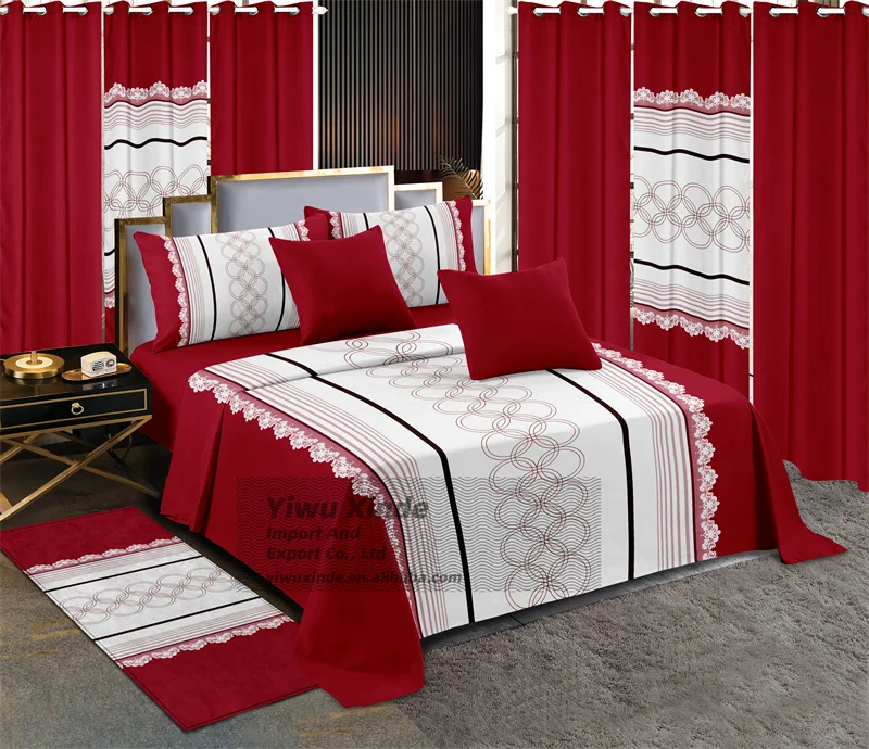 Bedding 13 Piece Sheet Collections King Size Bed Sheets Set with Carpet Wholesale Price Printed Curtain Bedding Set