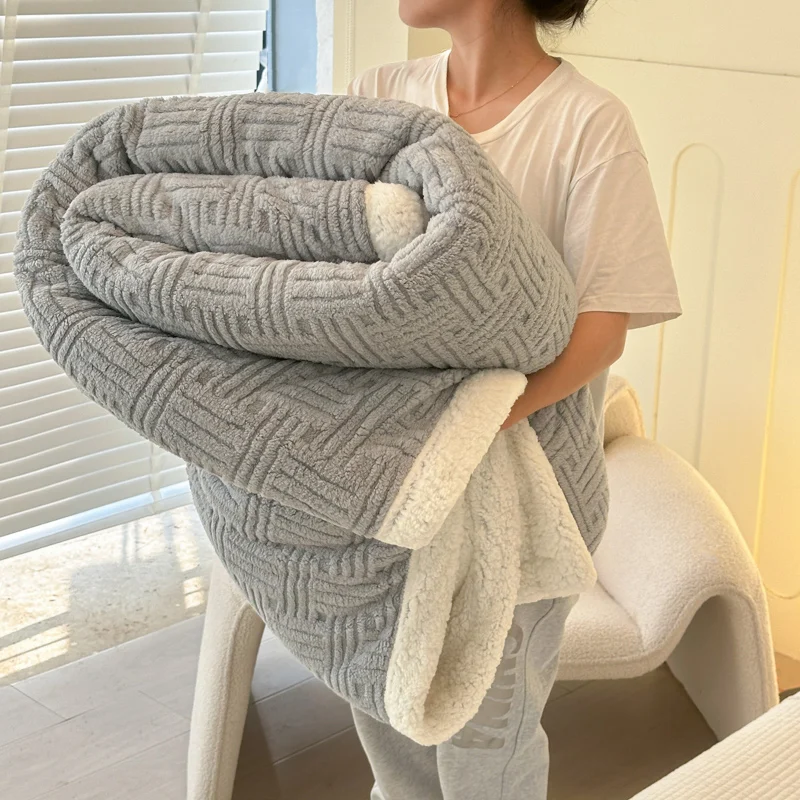 Luxury Jacquard Flannel Fleece Throw Blanket Solid Color Thick Soft Winter Home Use for Bed Sofa Large Knitted Sherpa Blanket
