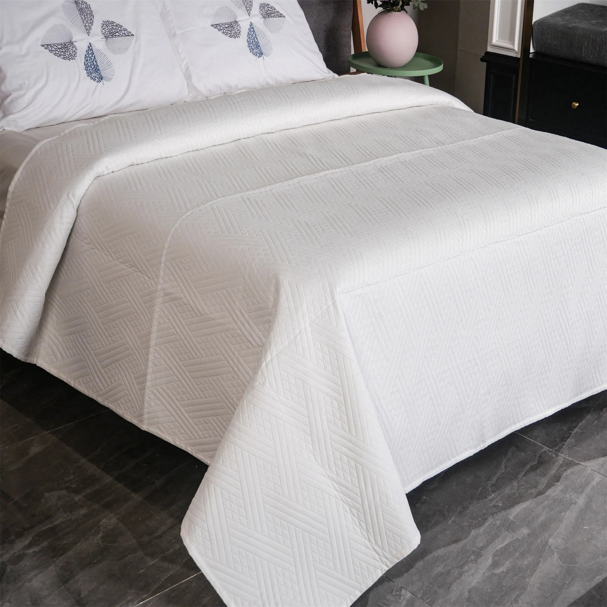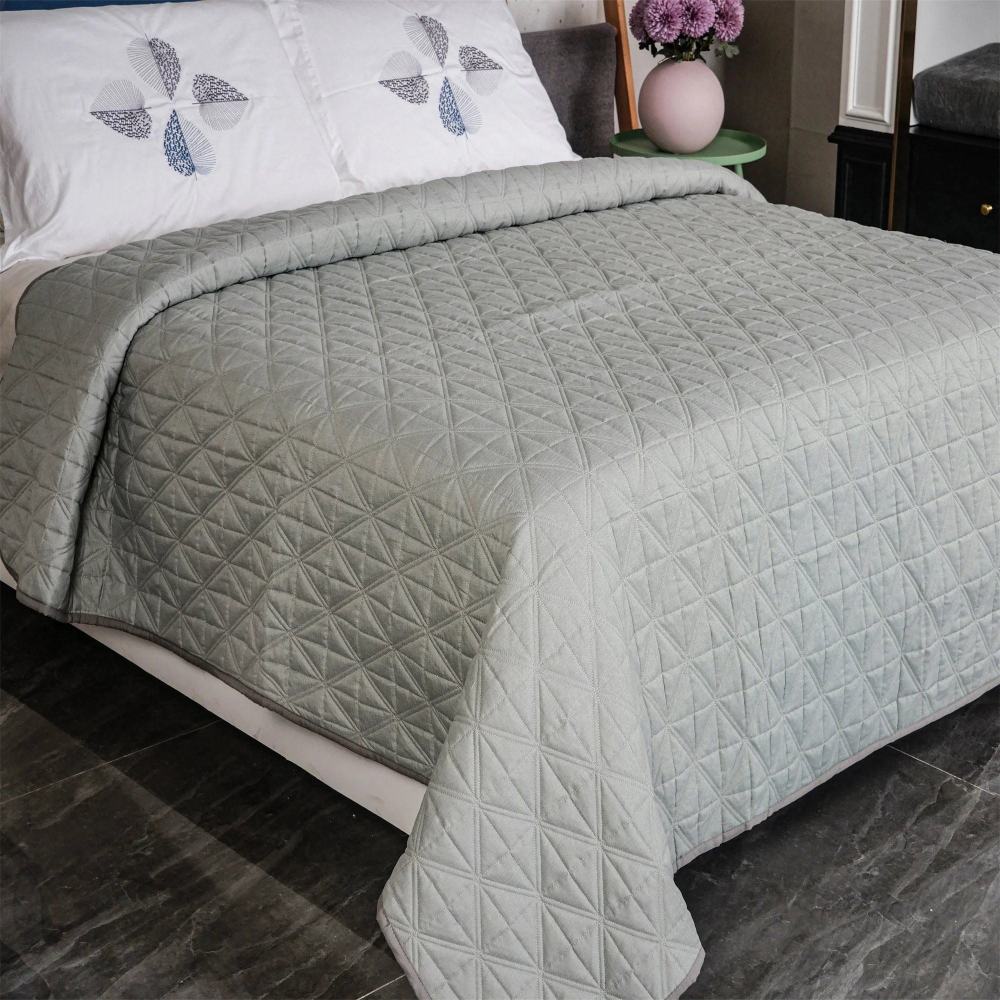 Queen King Size Velvet Microfiber Quilt Bedspread Set with Ultrasonic Embossing or Quilting or Embroidery Designs