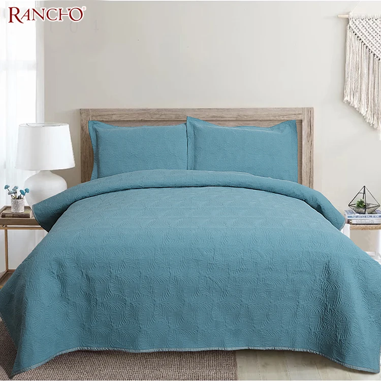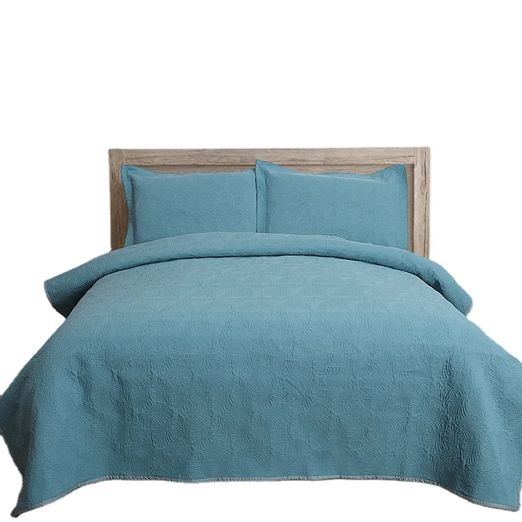 Customize New Embroidery Design Light Color Hotel Bedspread Quilt Bedding Set