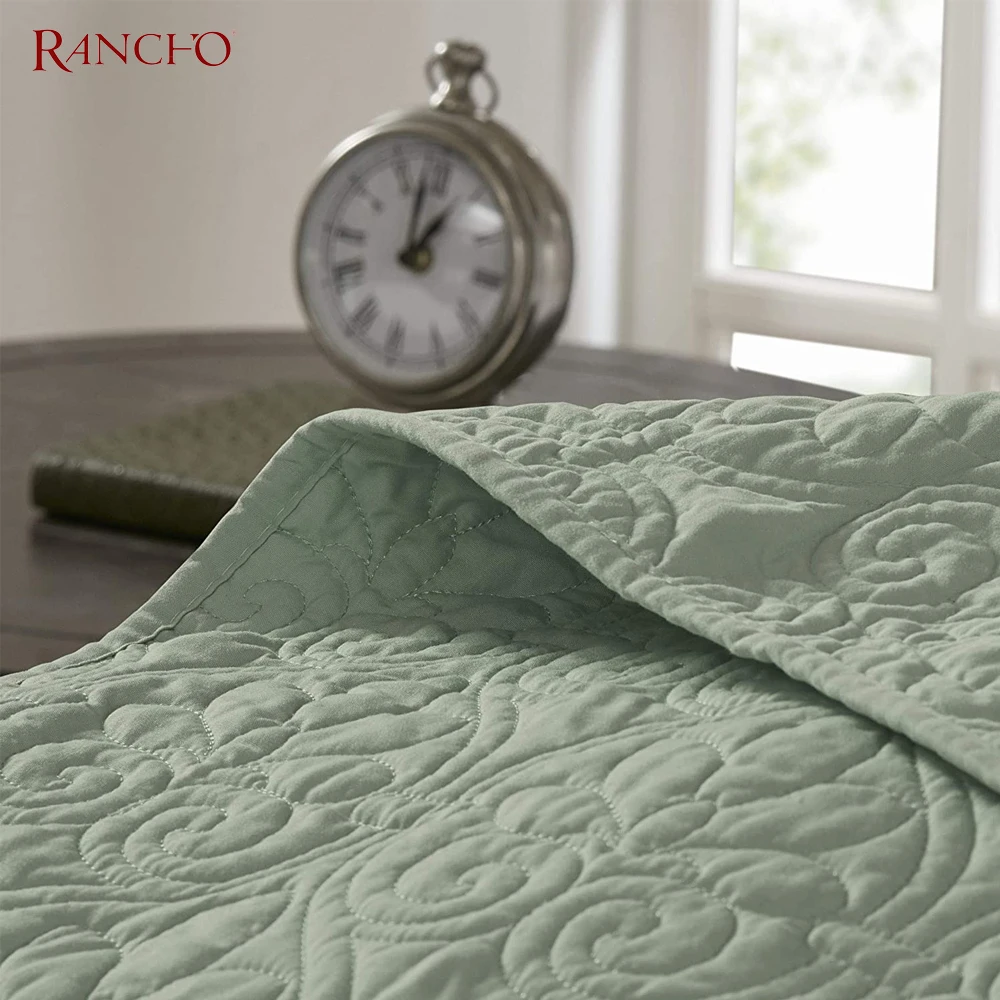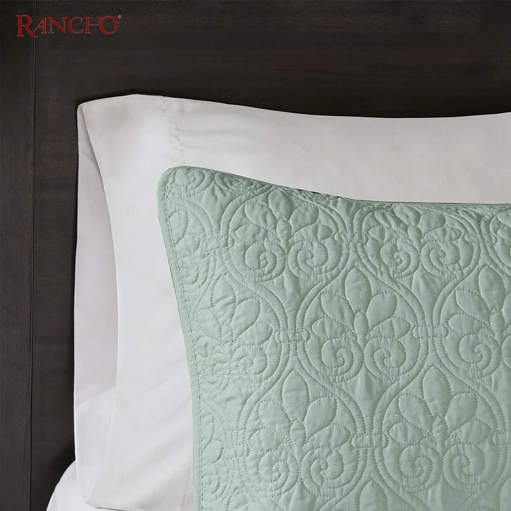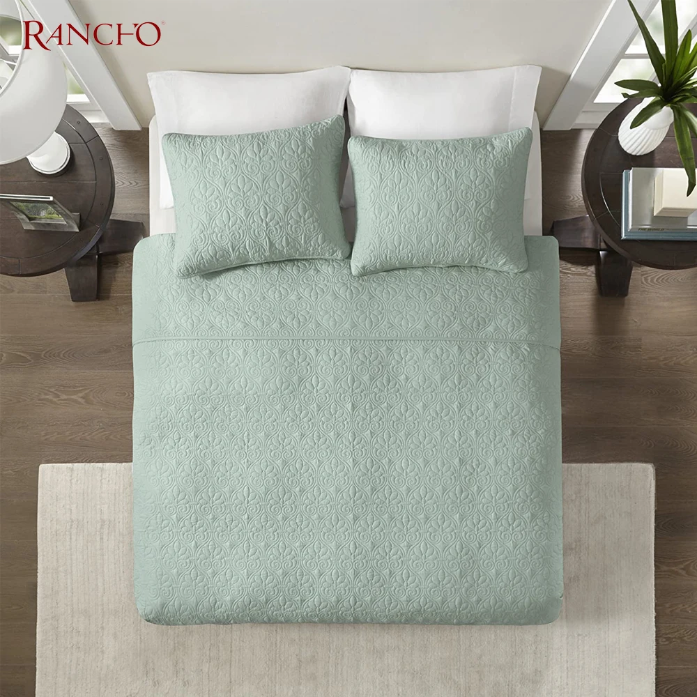 Superior Quality Unique Design Soft Green Custom Twin Size Embroidery Quilt Bedspread