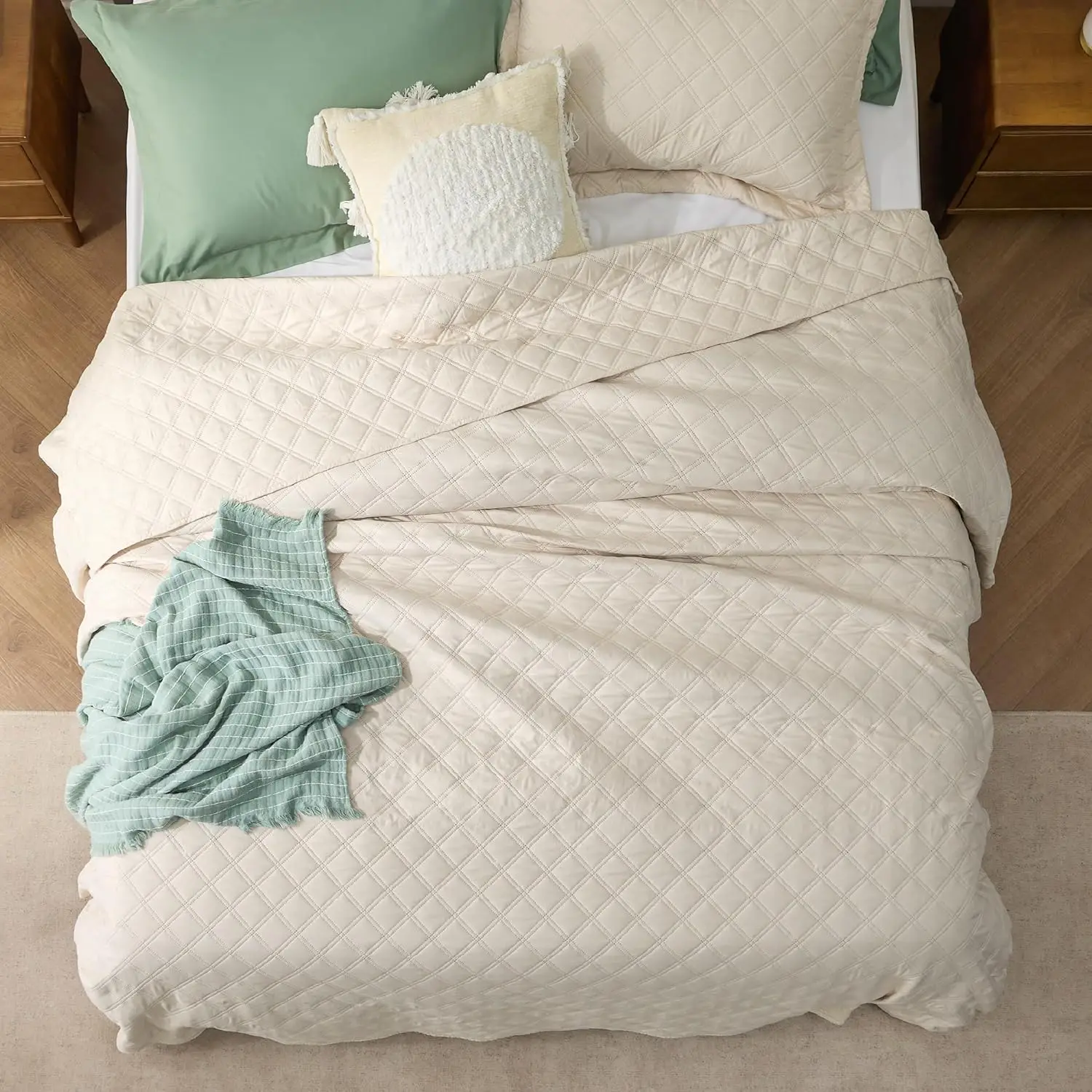 100% Bamboo Fiber Woven Modern Solid Color Bedding Set Super King Size Includes Flat Bed Sheet Fitted Duvet Cover