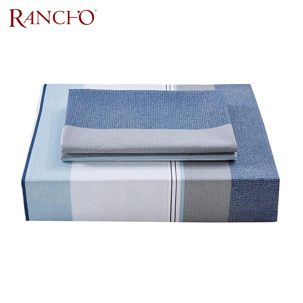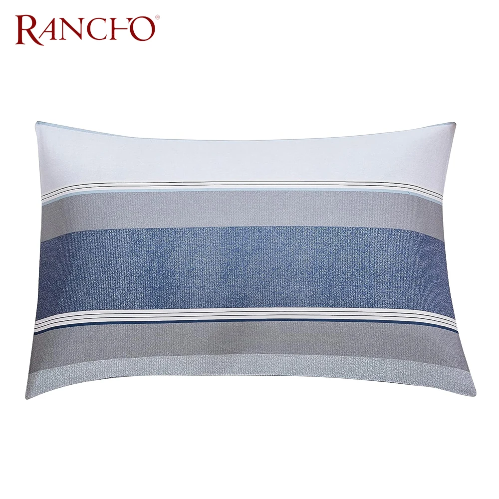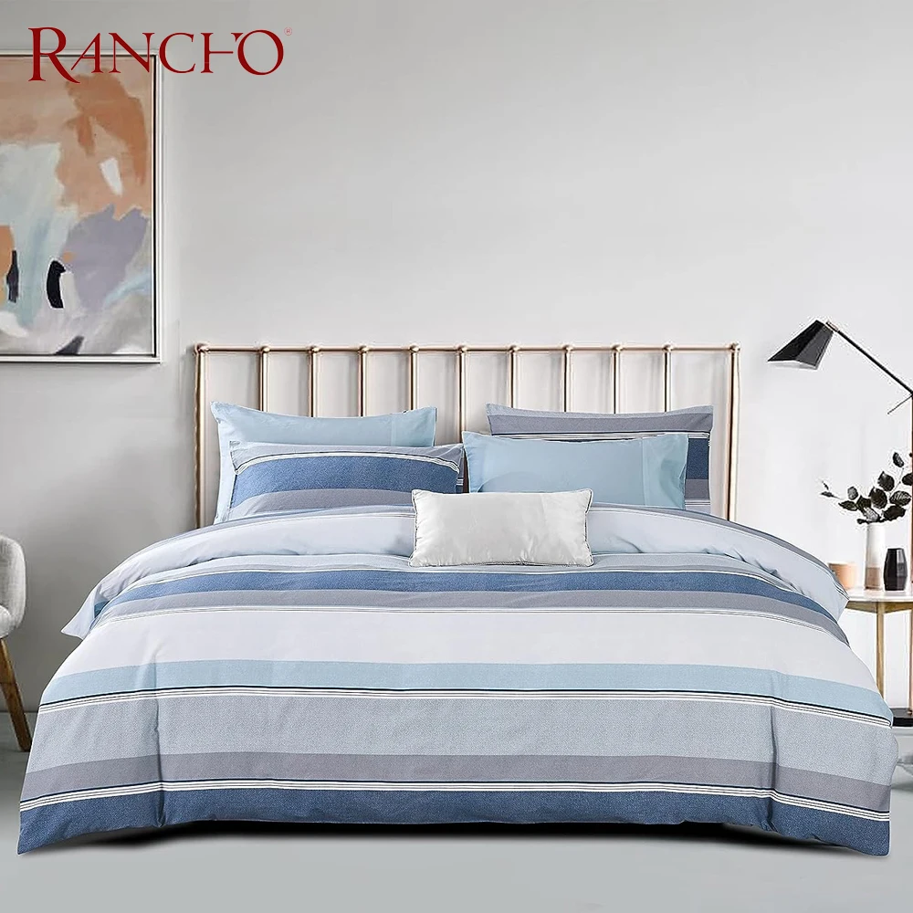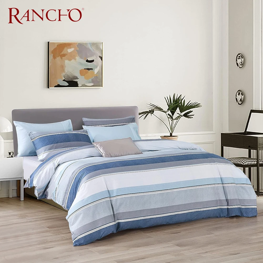 Rancho Duvet Cover Set 3 Pieces(1Piece Duvet Cover &2 Pieces Pillowcases) Printed Blue White Stripe Zipper Closure