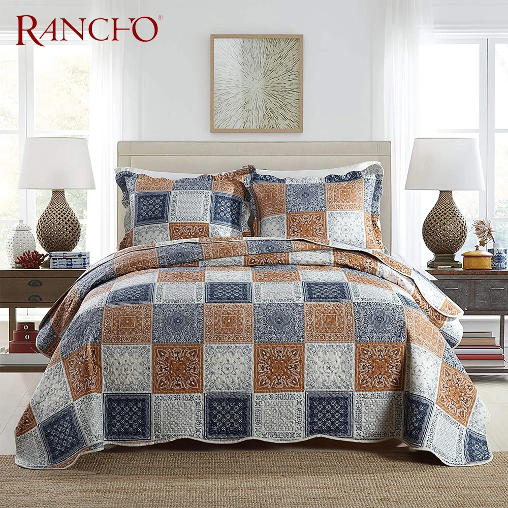 Hot Selling Luxury and Fashionable Printed Design Quilt Set 3-Pieces Bedspread for Home Use