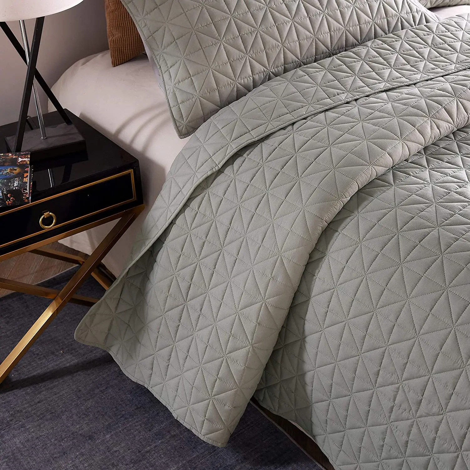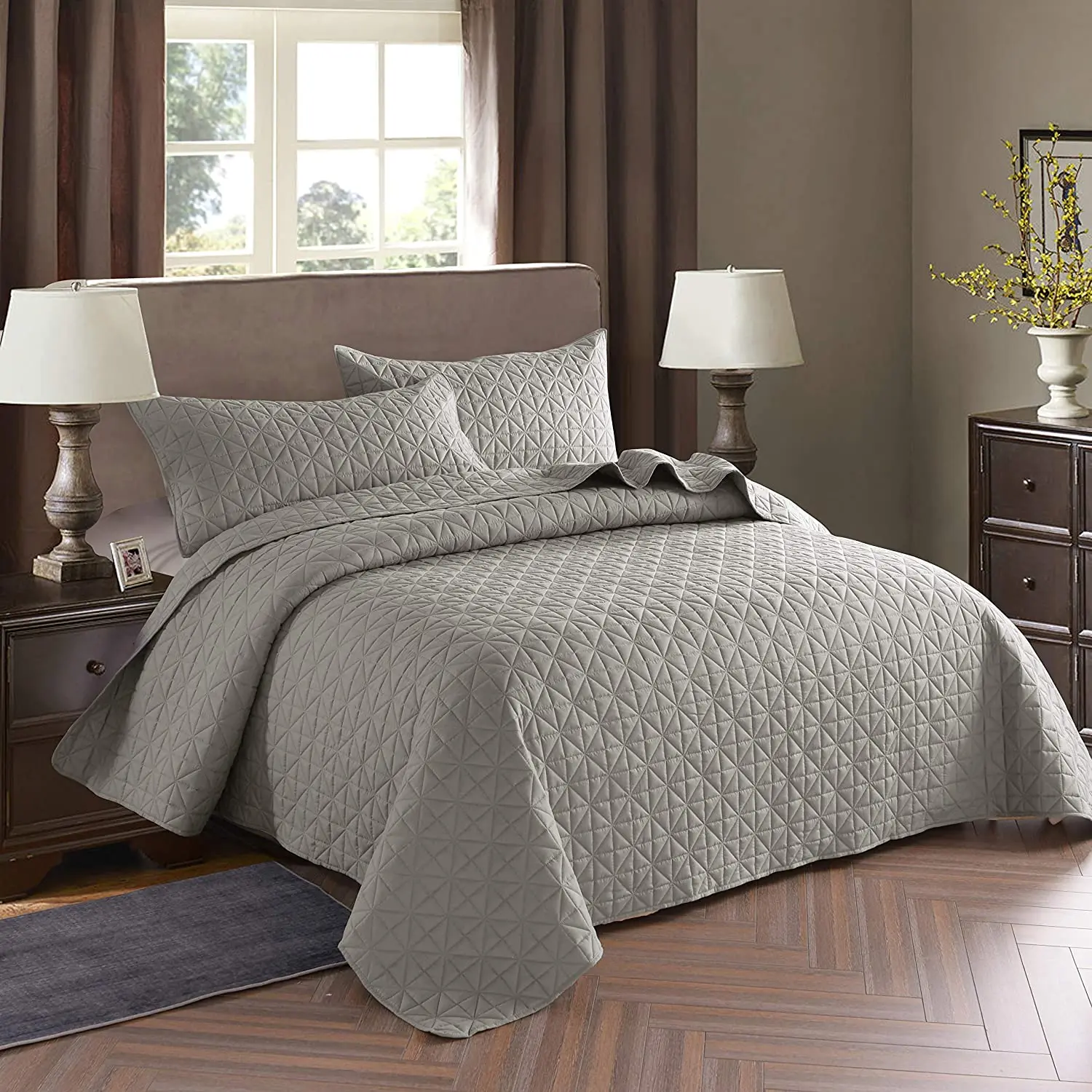 Solid Color Embroidered Polyester Microfiber Bedspread Quilt