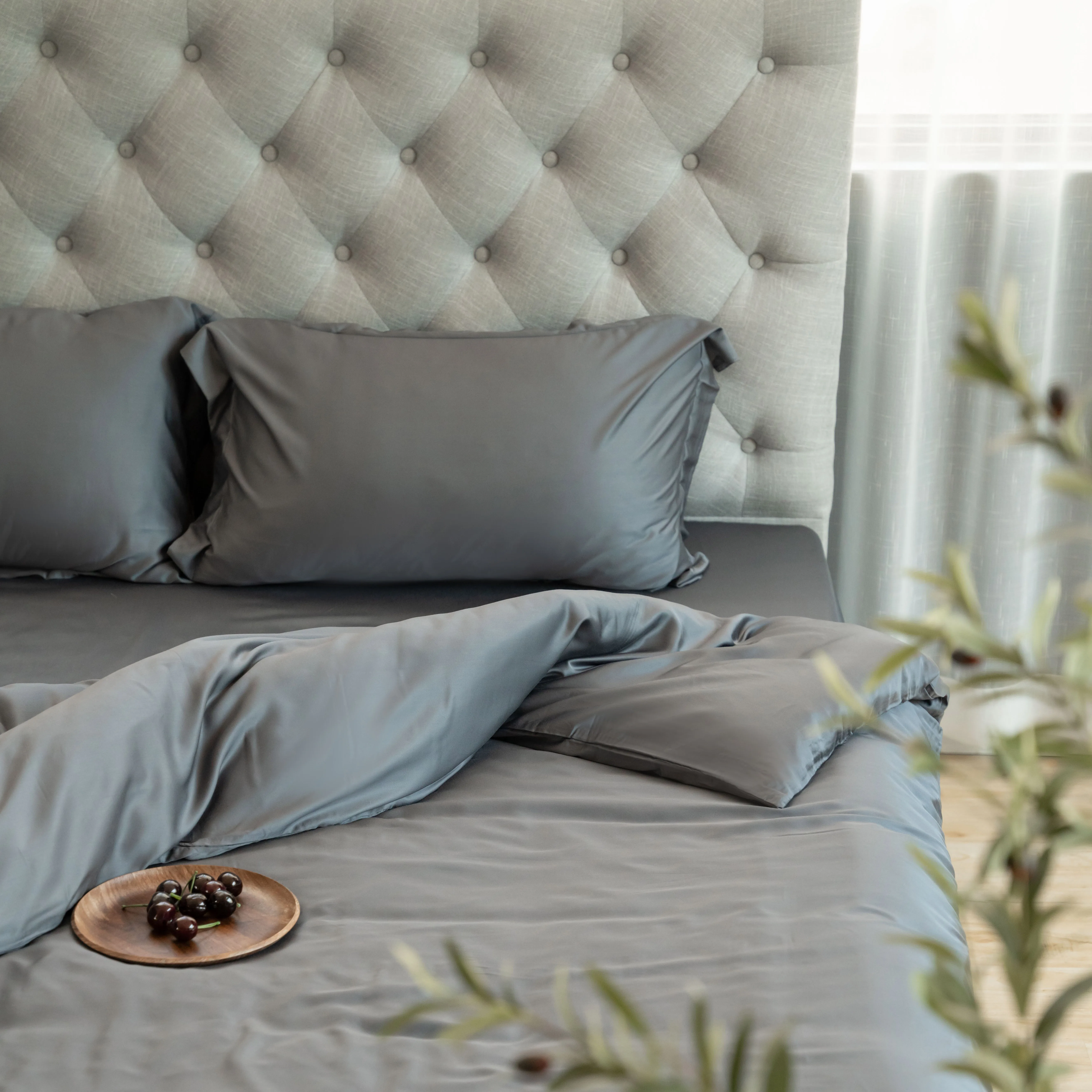 100% Bamboo Fiber Woven Modern Solid Color Bedding Set Super King Size Includes Flat Bed Sheet Fitted Duvet Cover
