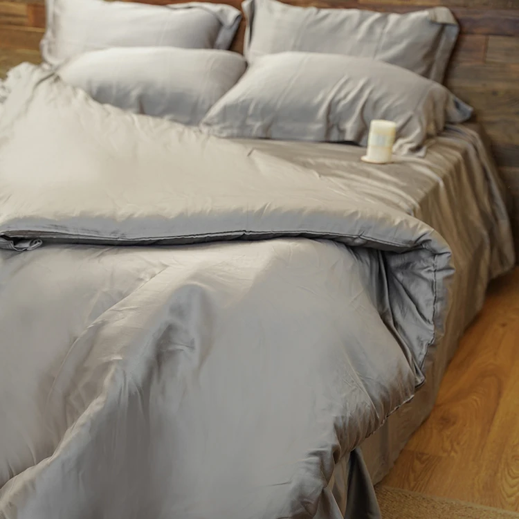 100% Bamboo Fiber Woven Modern Solid Color Bedding Set Super King Size Includes Flat Bed Sheet Fitted Duvet Cover