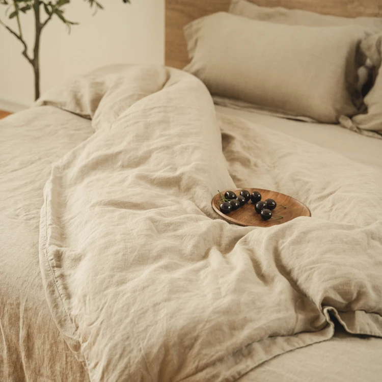 Wholesale Modern Linen Bedding Comforter Set Biodegradable Soft Duvet Cover with Pure French Fabric Woven Technique
