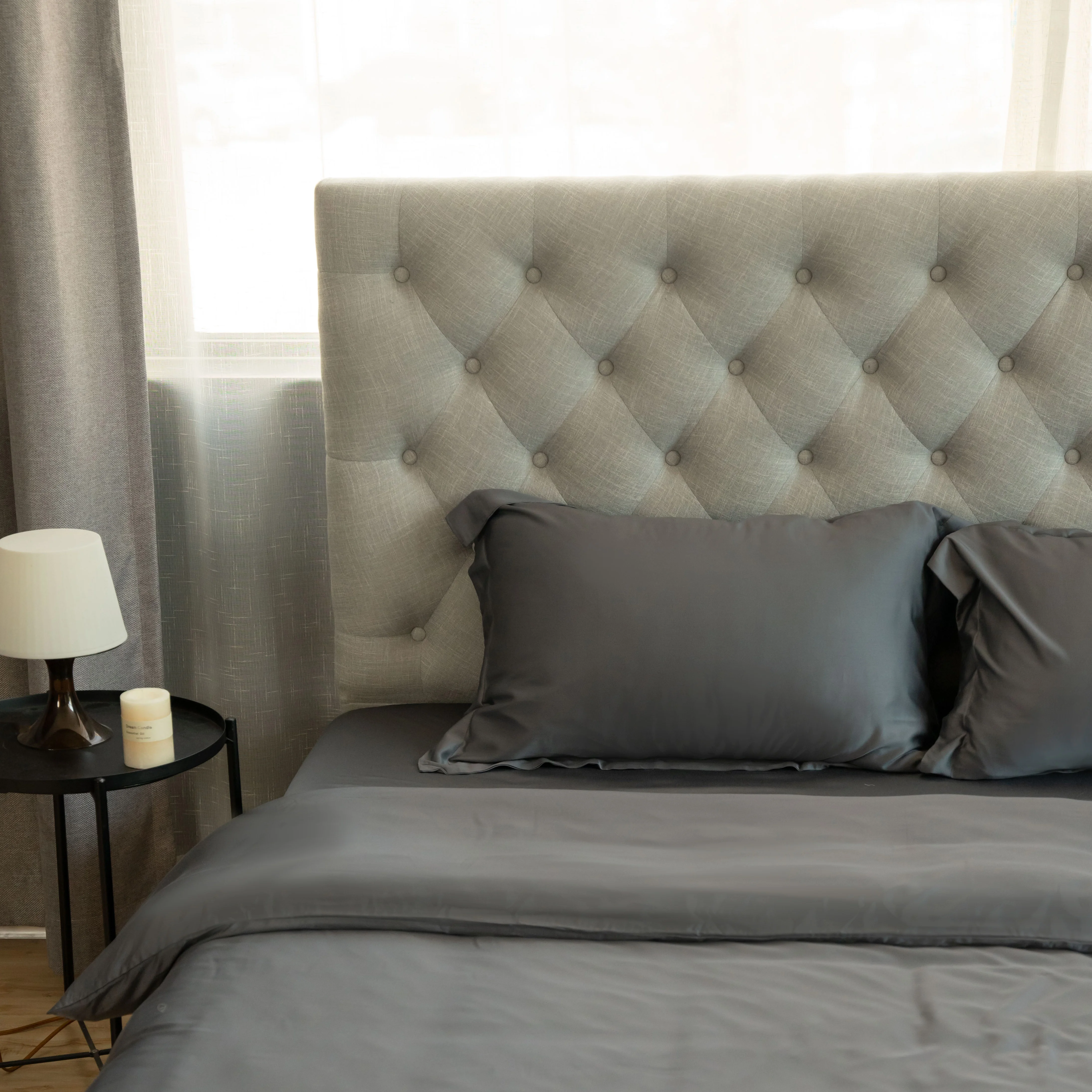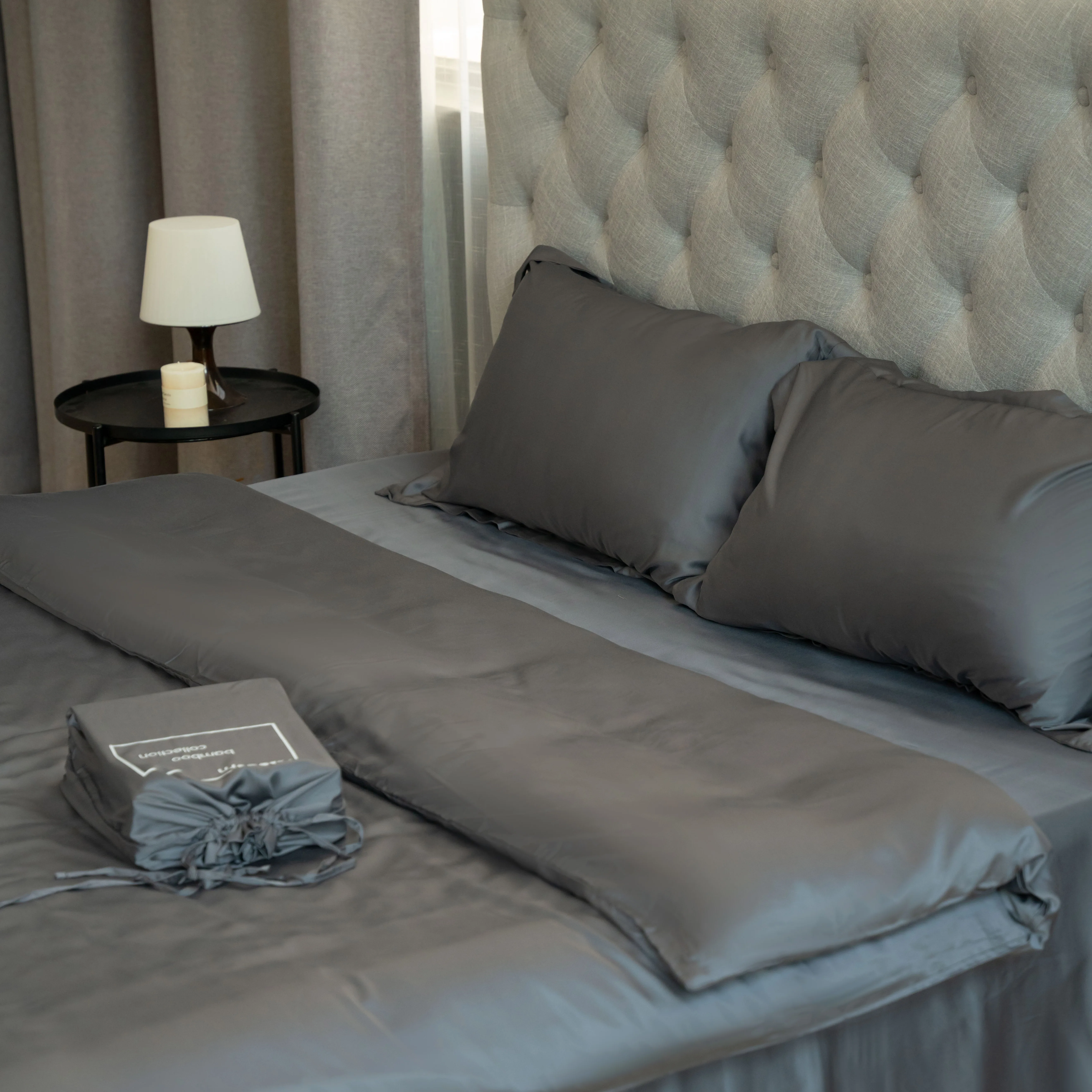 100% Bamboo Fiber Woven Modern Solid Color Bedding Set Super King Size Includes Flat Bed Sheet Fitted Duvet Cover