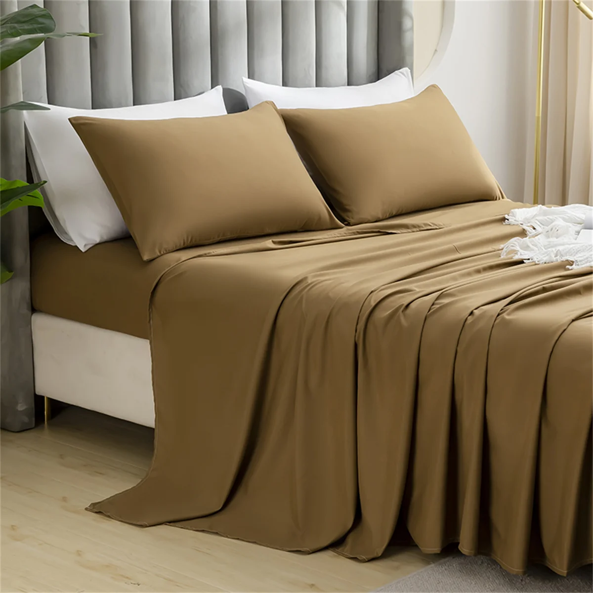 OEKO-TEX Luxury 100% Bamboo Bed Sheet Set Cooling Bedding Sets Solid Color for Home