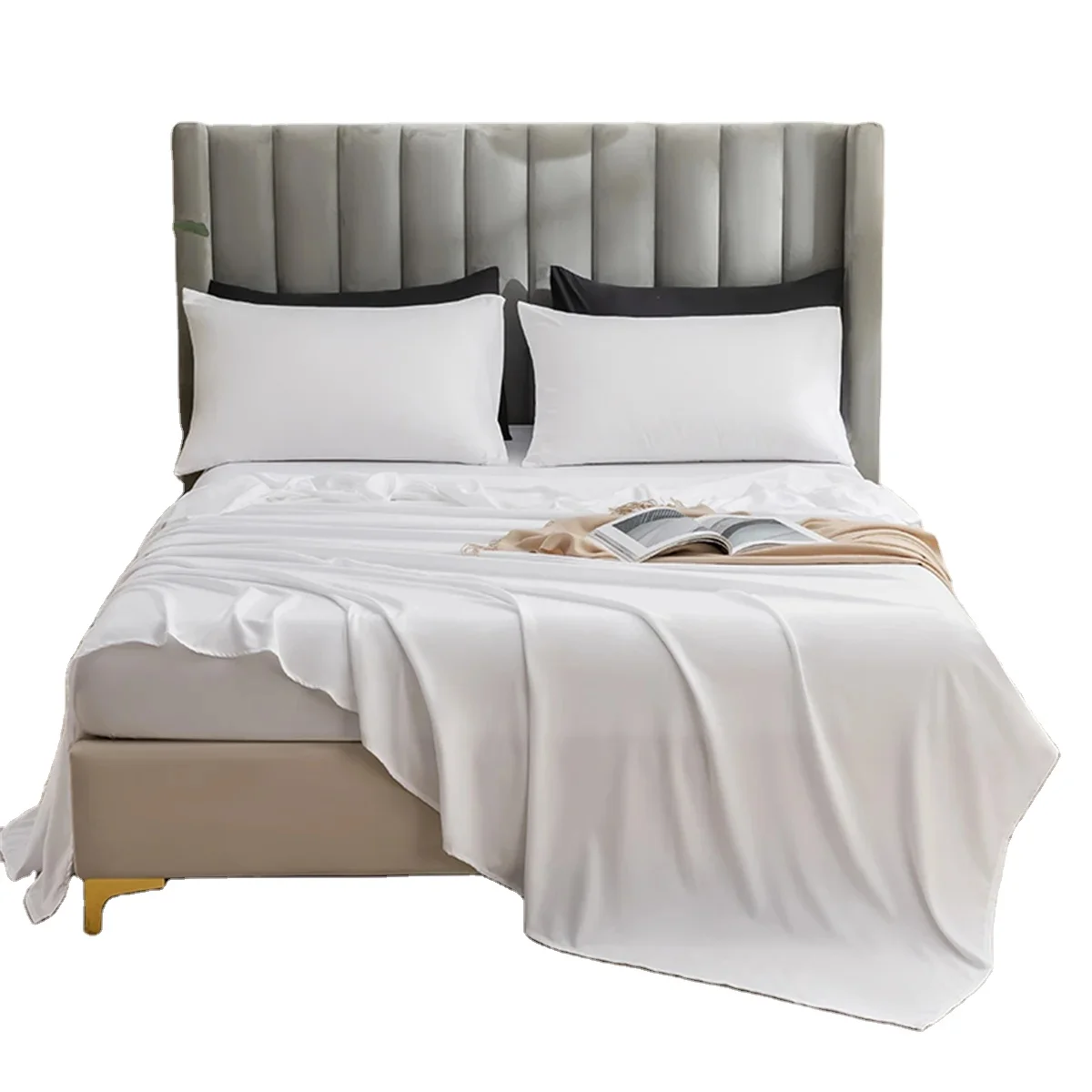 100% Bamboo Woven Modern Solid Color Bedding Set Flat Sheet Fitted Sheet Pillowcases 300tc Thread Count Wedding Four-piece Kit