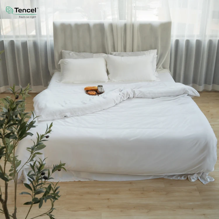 Silky Smooth Tencel Fabric Bed Sheets Set Lyocell Bed Duvet Cover Queen Size