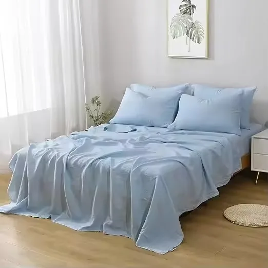 100% Flax Linen Bedding Set French Flax Linen Duvet Cover Sets Bed Sheets Set Wholesale Flax Linen Bedding Fitted Sheet