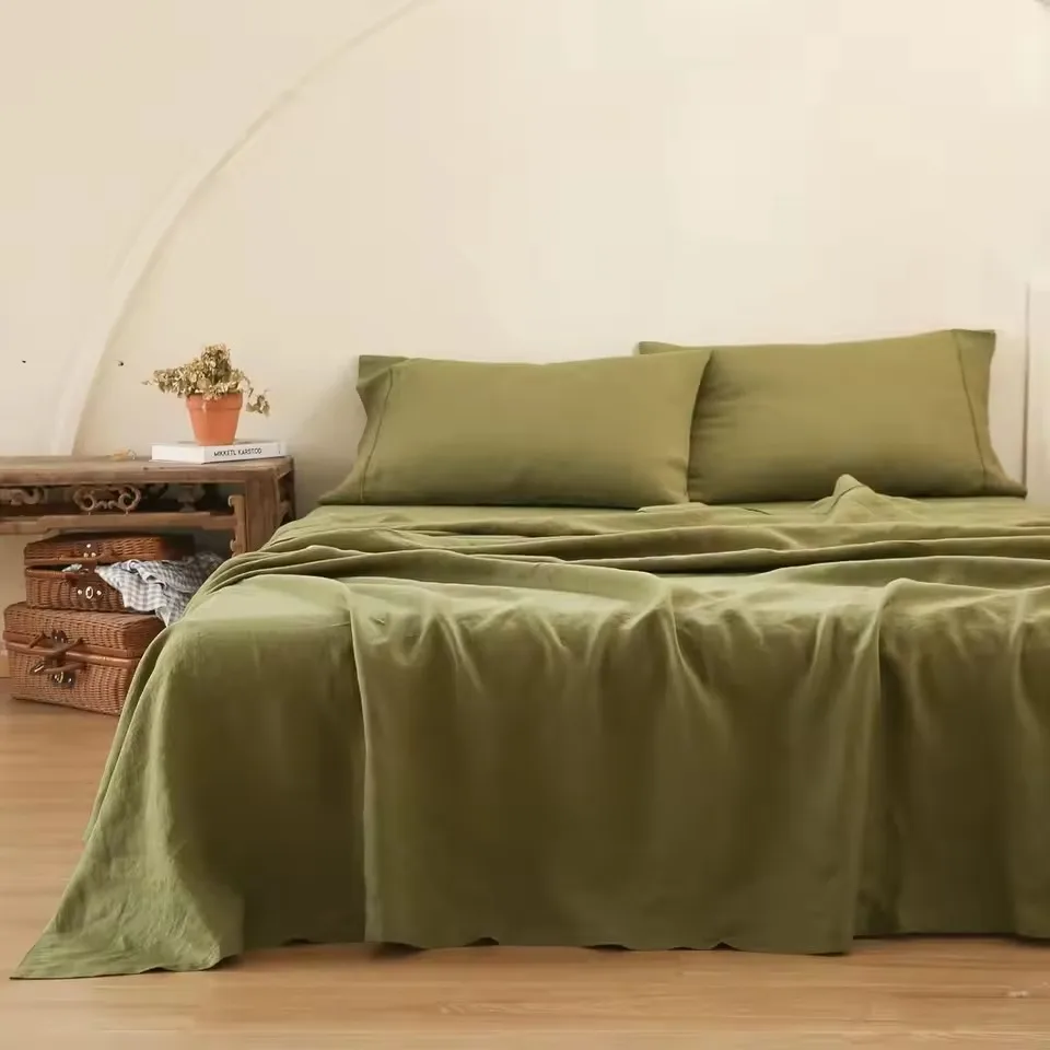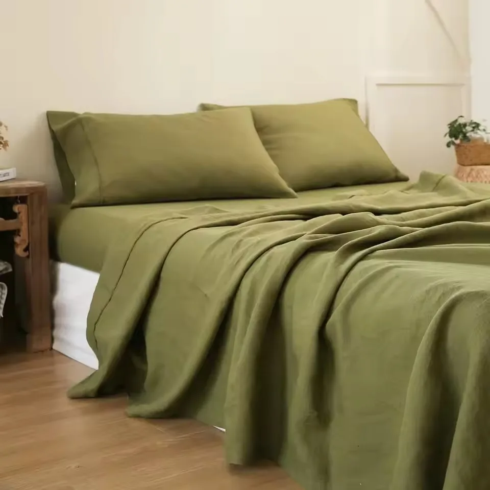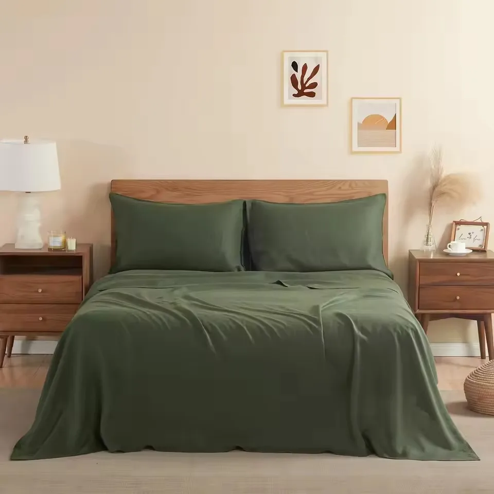 100% Bamboo Fiber Woven Modern Solid Color Bedding Set Super King Size Includes Flat Bed Sheet Fitted Duvet Cover