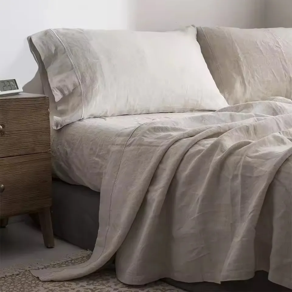 Luxury Hotel Home Flax Linen Bedding Sets 100% Pure European Flax Linen Custom Soft Natural Breathable