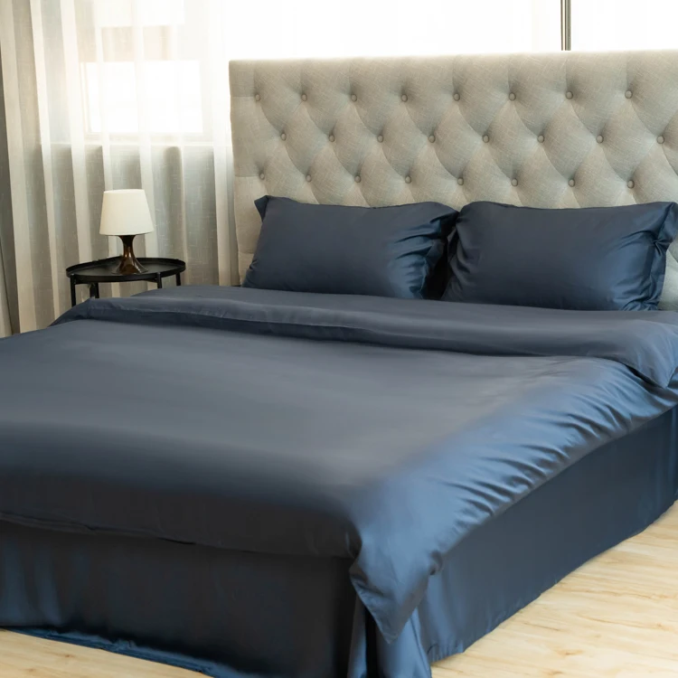 100% Bamboo Fiber Woven Modern Solid Color Bedding Set Super King Size Includes Flat Bed Sheet Fitted Duvet Cover