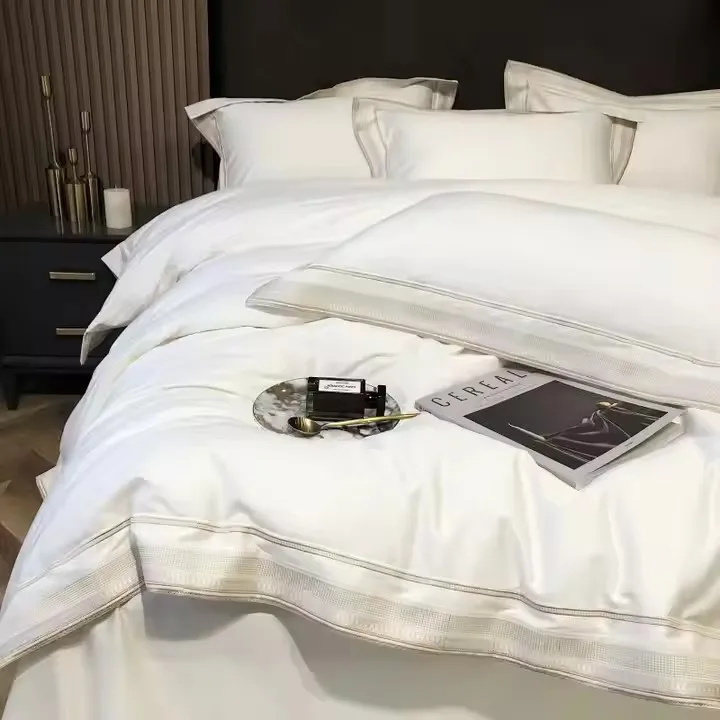 Eco Friendly Luxury Bamboo Fiber Bedding Set 4 Pieces Breathable Bed Linen for Hotel Use