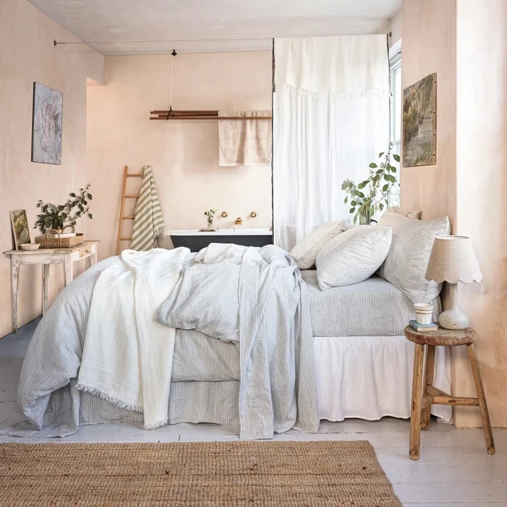 Wholesales Eco Friendly 100% Pure French Flax Linen Duvet Cover Stone Washed Fitted Sheet Deep Pocket French Linen Bedding Sheet