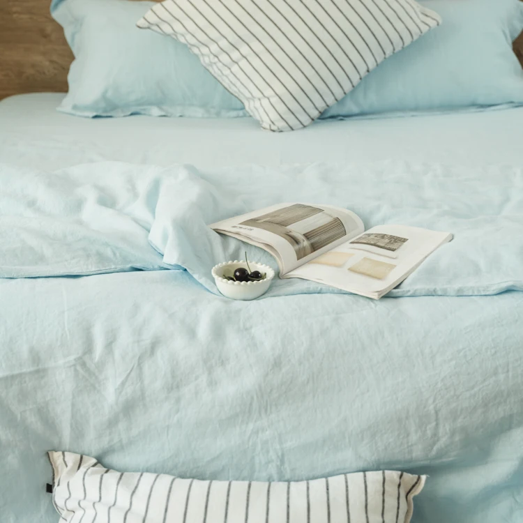 Wholesale 100% Pure Flax Linen Premium Bedding Sheet Luxury Double Bedding Sets French Natural Linen Bed Sheet Set