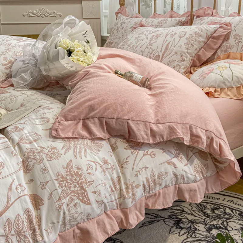 Ultra Soft Stone Washed French Flax Linen Sheets Digital Printing Personalized Design Bedsheet Bedding Set Fiber Luxury Flat Sh