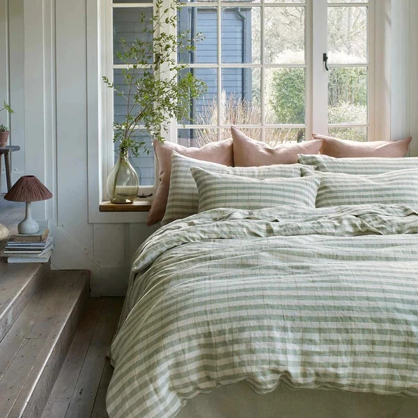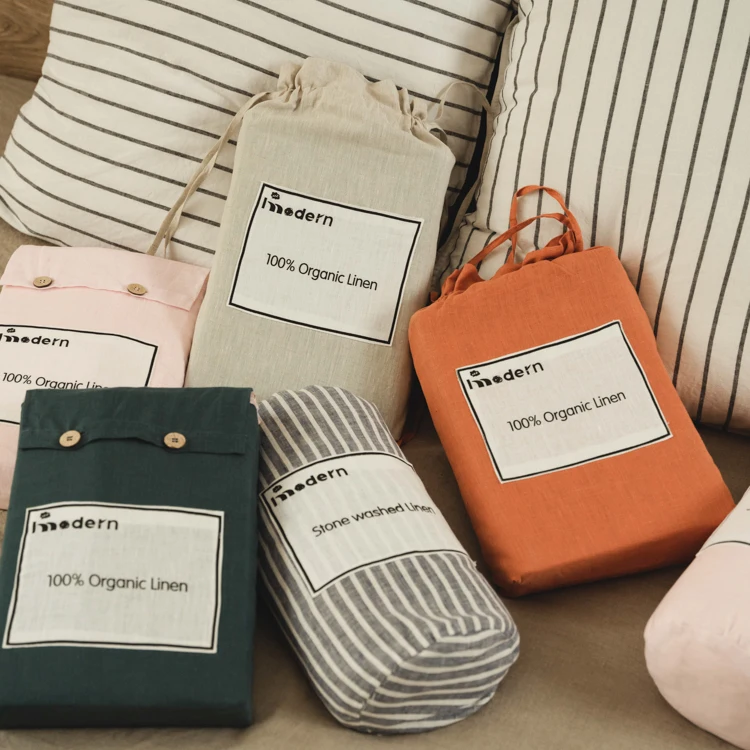 GOTS Certificate French Flax Linen Stripe 100% Natural French Linen Duvet Cover Pillowcase Set and Bed Sheet Set