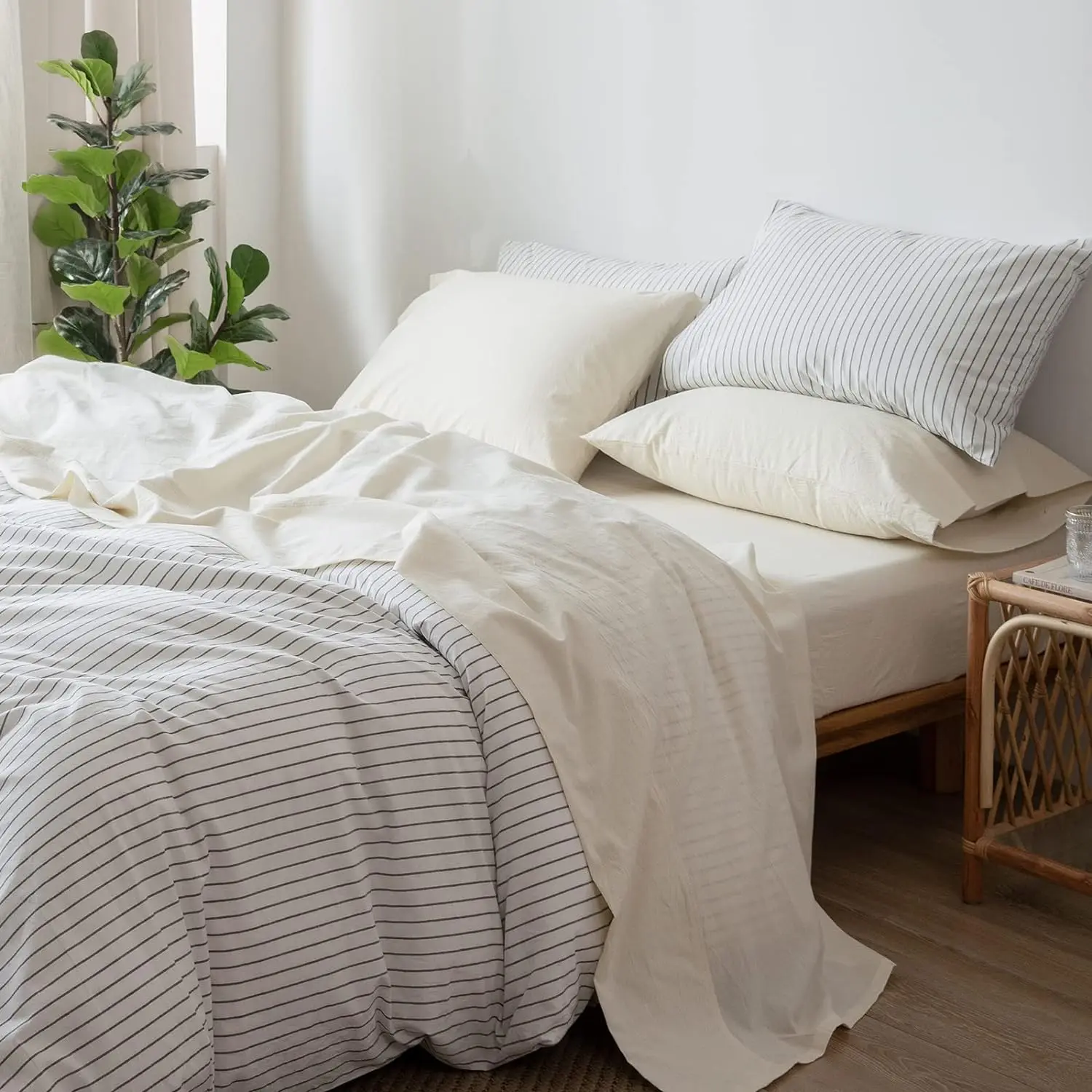 Natural Hypoallergenic Woven Modern Bamboo Duvet Cover Set Organic Cooling King Size 300tc Summer Bedding