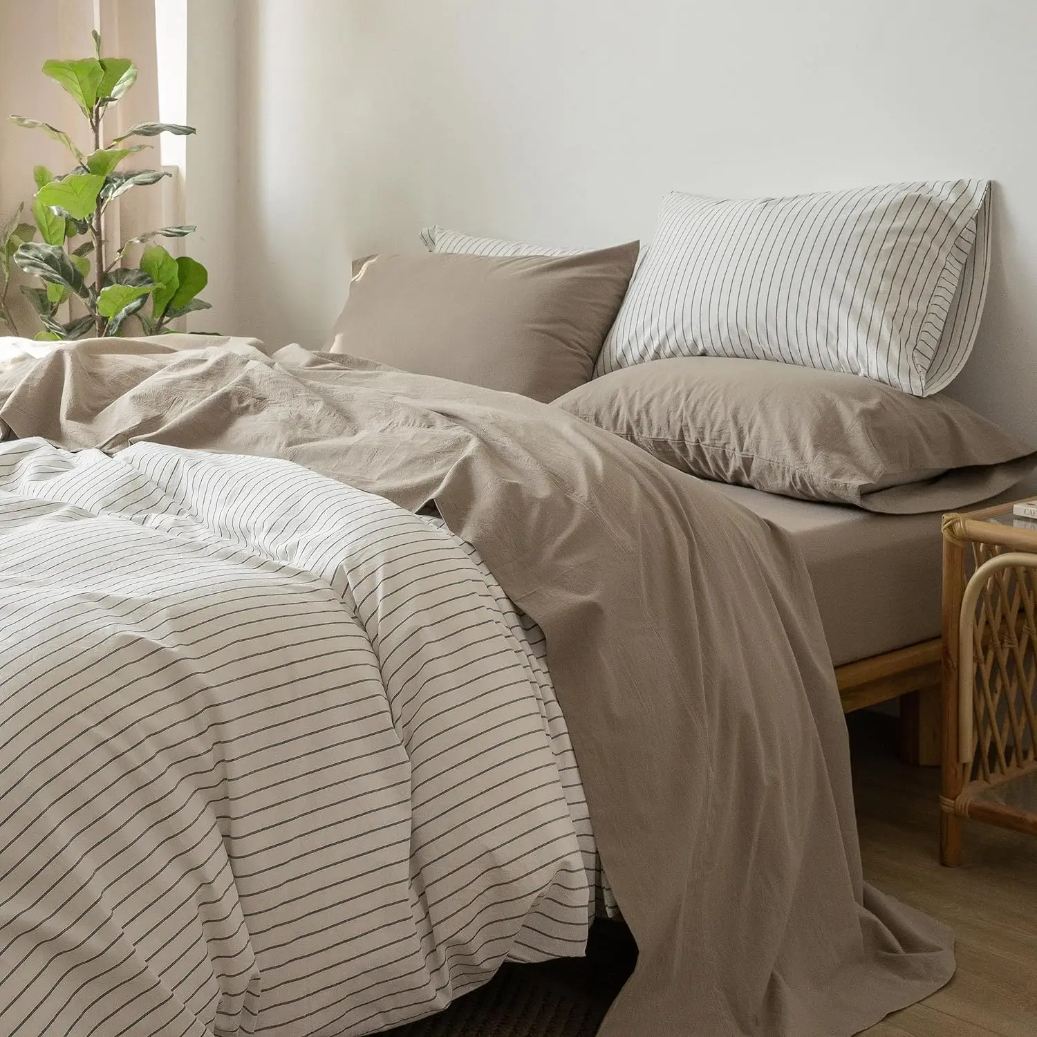 100% Bamboo Fiber Woven Modern Solid Color Bedding Set Super King Size Includes Flat Bed Sheet Fitted Duvet Cover