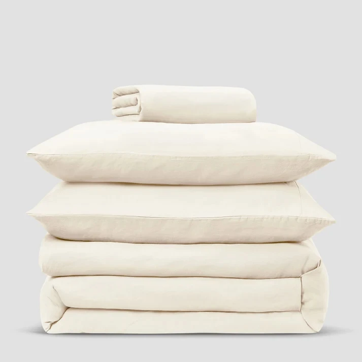 New Design Stone Washed 100% European Flax Linen Bed Sheets Natural French Linen Duvet Cover Bedding Set