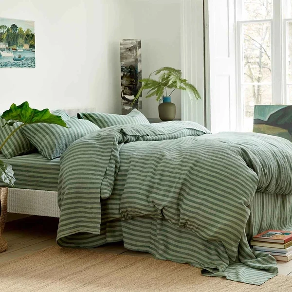 High Quality 100% French Flax Linen Duvet Cover Set Yarn Dyed Pinstripe French Linen Sheets