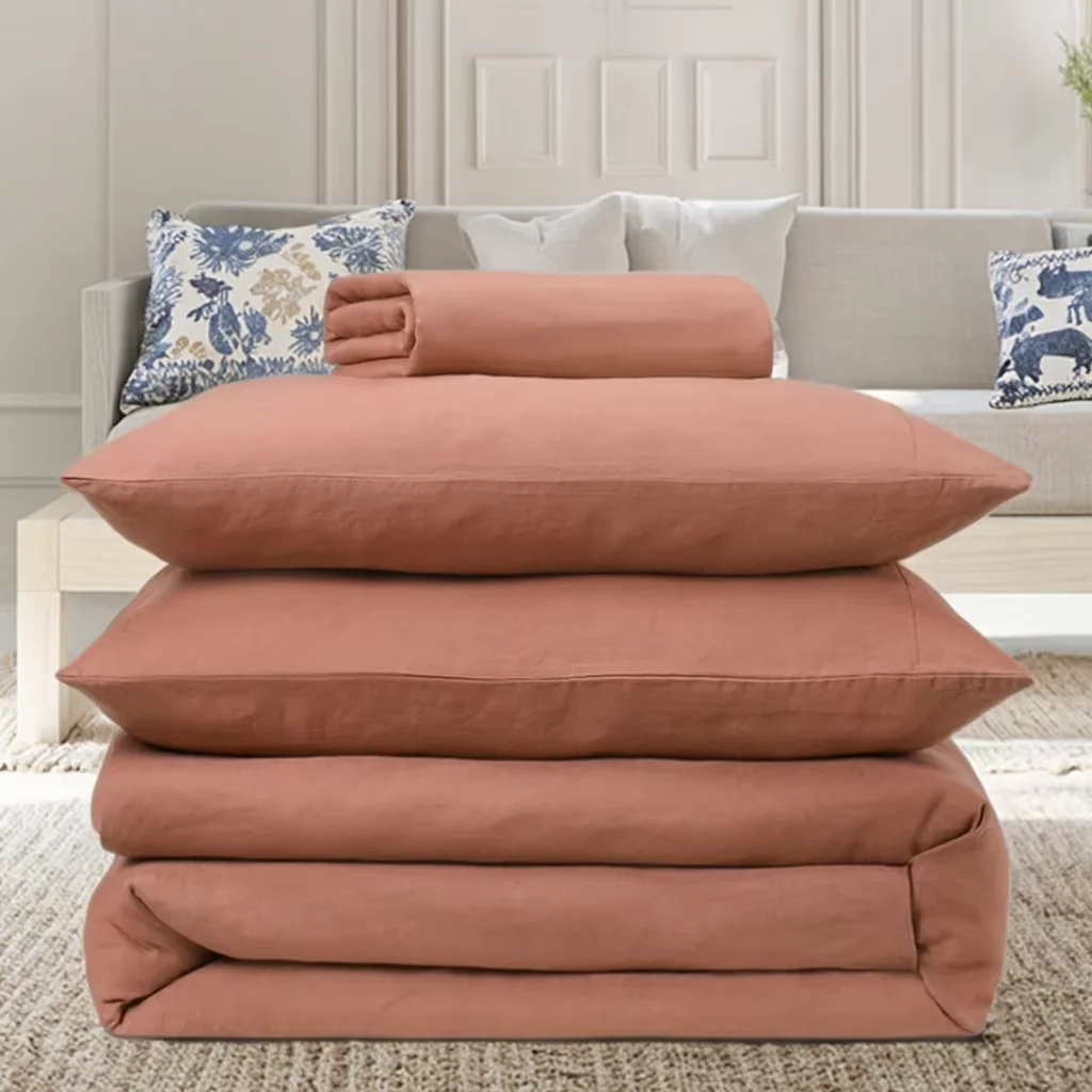 GOTS Breathable European Linen Solid Bedding Sets Preshrunk Organic Pure Linen Bed Sheet 170gsm Flax Linen Quilt Cover Set