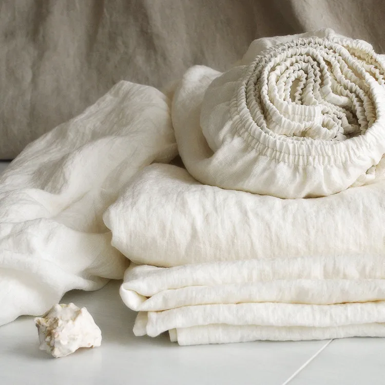 GOTS Certified Soft 100% Organic Linen Home Textiles Bedding Set Flat Fitted Sheet With 2 Pillow