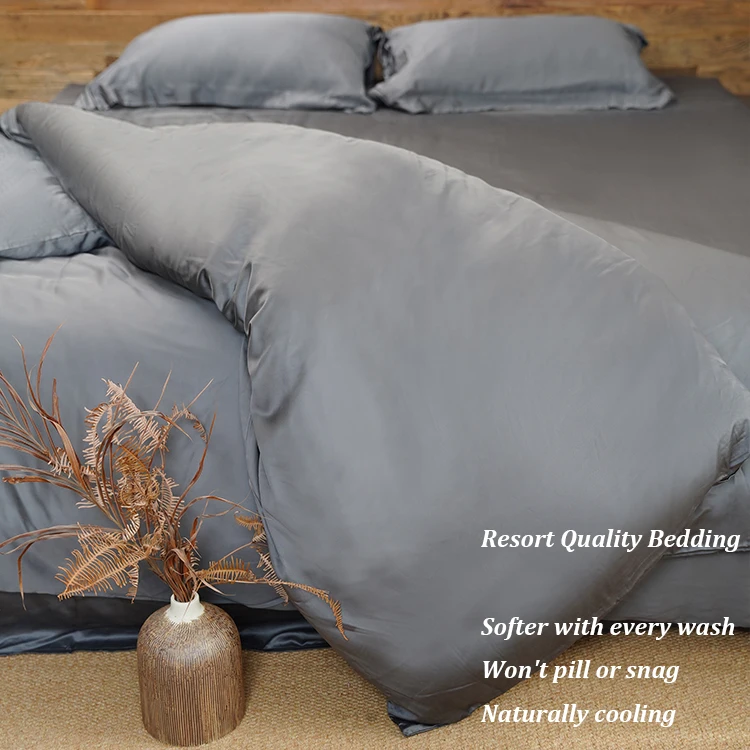 100% Bamboo Fiber Woven Modern Solid Color Bedding Set Super King Size Includes Flat Bed Sheet Fitted Duvet Cover