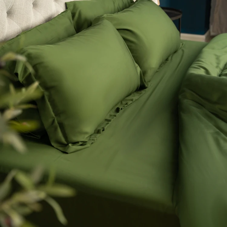 100% Bamboo Fiber Woven Modern Solid Color Bedding Set Super King Size Includes Flat Bed Sheet Fitted Duvet Cover