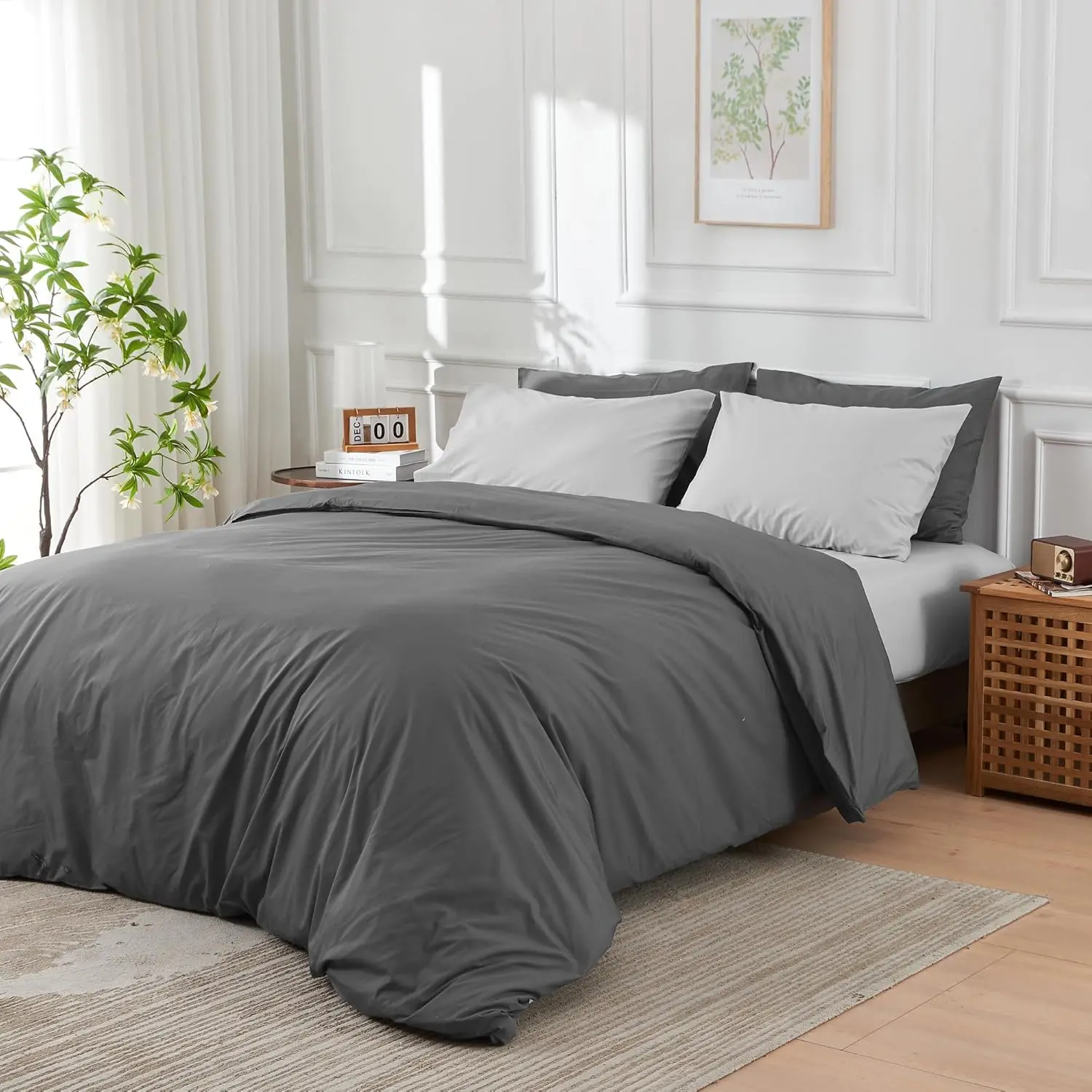 100% Bamboo Fiber King Size 300tc 3-Piece Modern Duvet Cover Set with Flat Sheet Fitted Sheet and Pillowcases