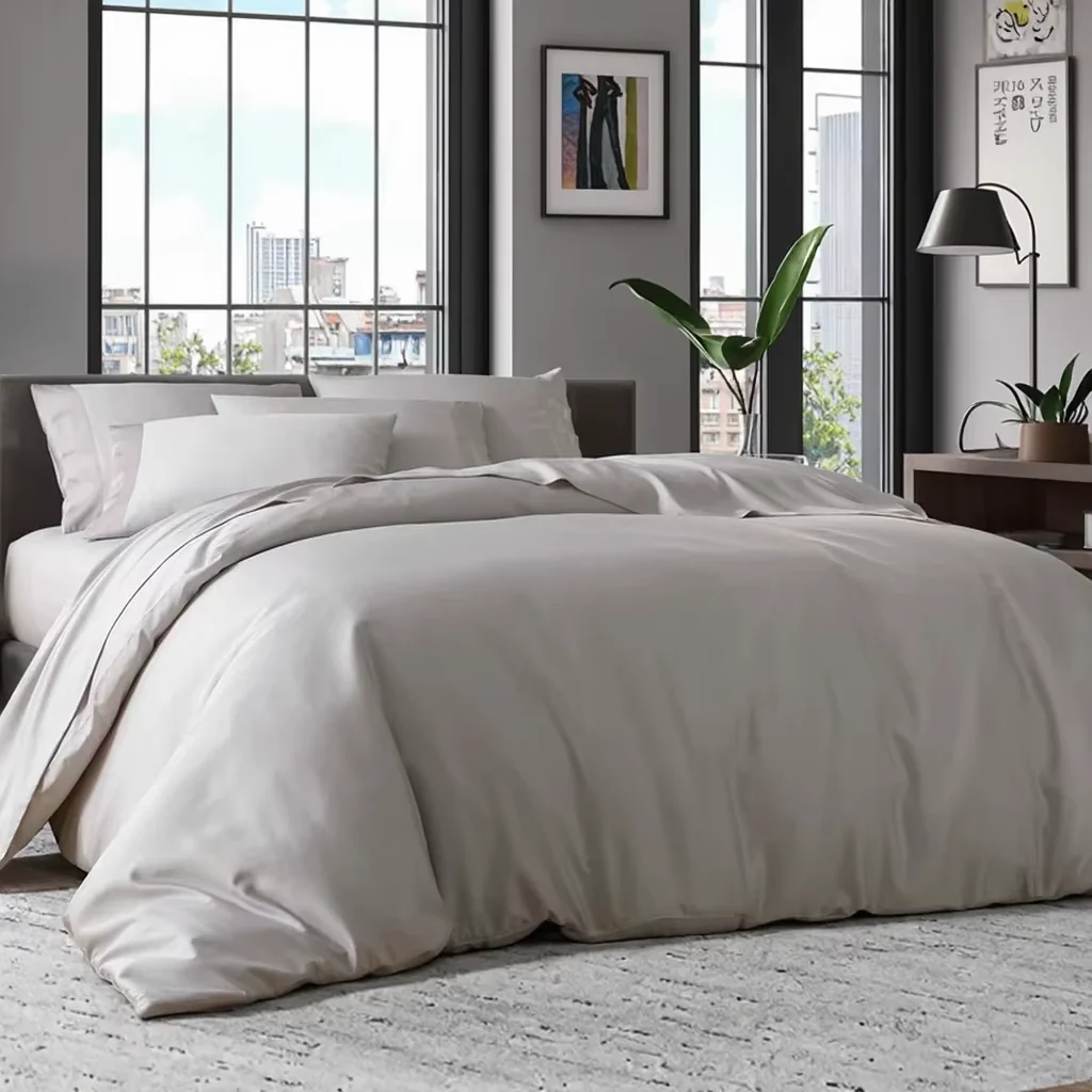 100% Bamboo Fiber King Size 300tc 3-Piece Modern Duvet Cover Set with Flat Sheet Fitted Sheet and Pillowcases