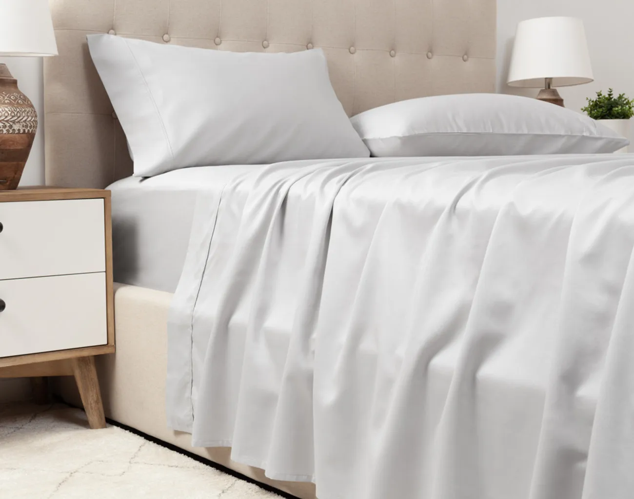 100% Bamboo Fiber Woven Modern Solid Color Bedding Set Super King Size Includes Flat Bed Sheet Fitted Duvet Cover
