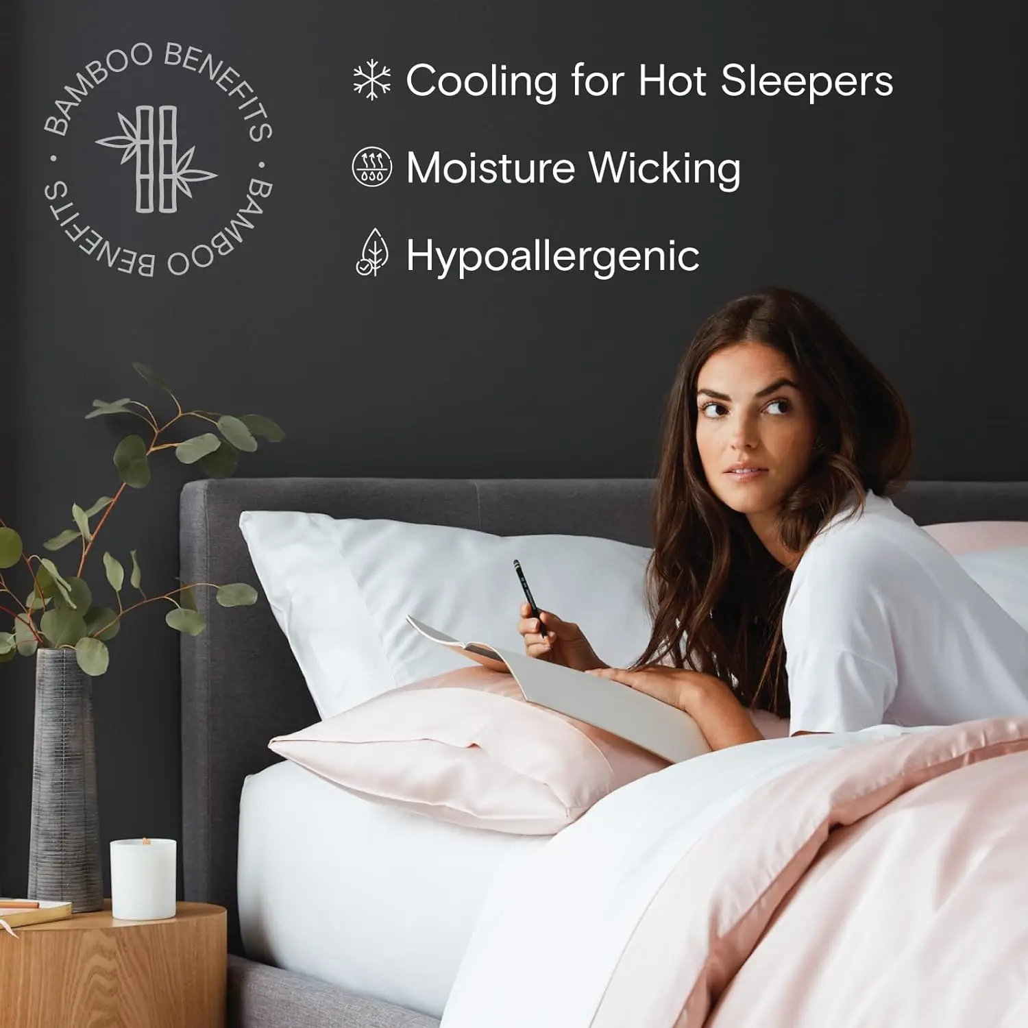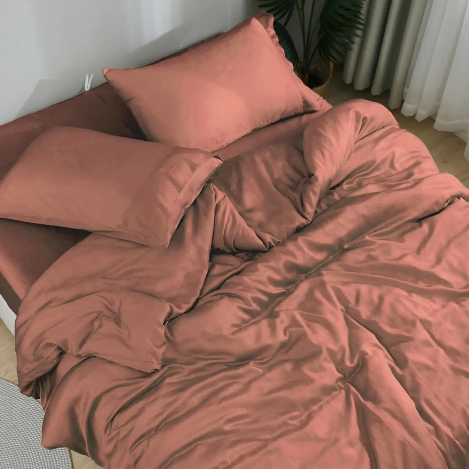 100% Bamboo Fiber Woven Modern Solid Color Bedding Set Super King Size Includes Flat Bed Sheet Fitted Duvet Cover