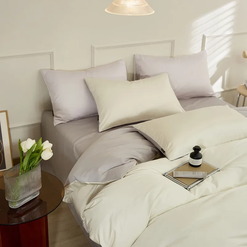 100% Bamboo Fiber Woven Modern Solid Color Bedding Set Super King Size Includes Flat Bed Sheet Fitted Duvet Cover